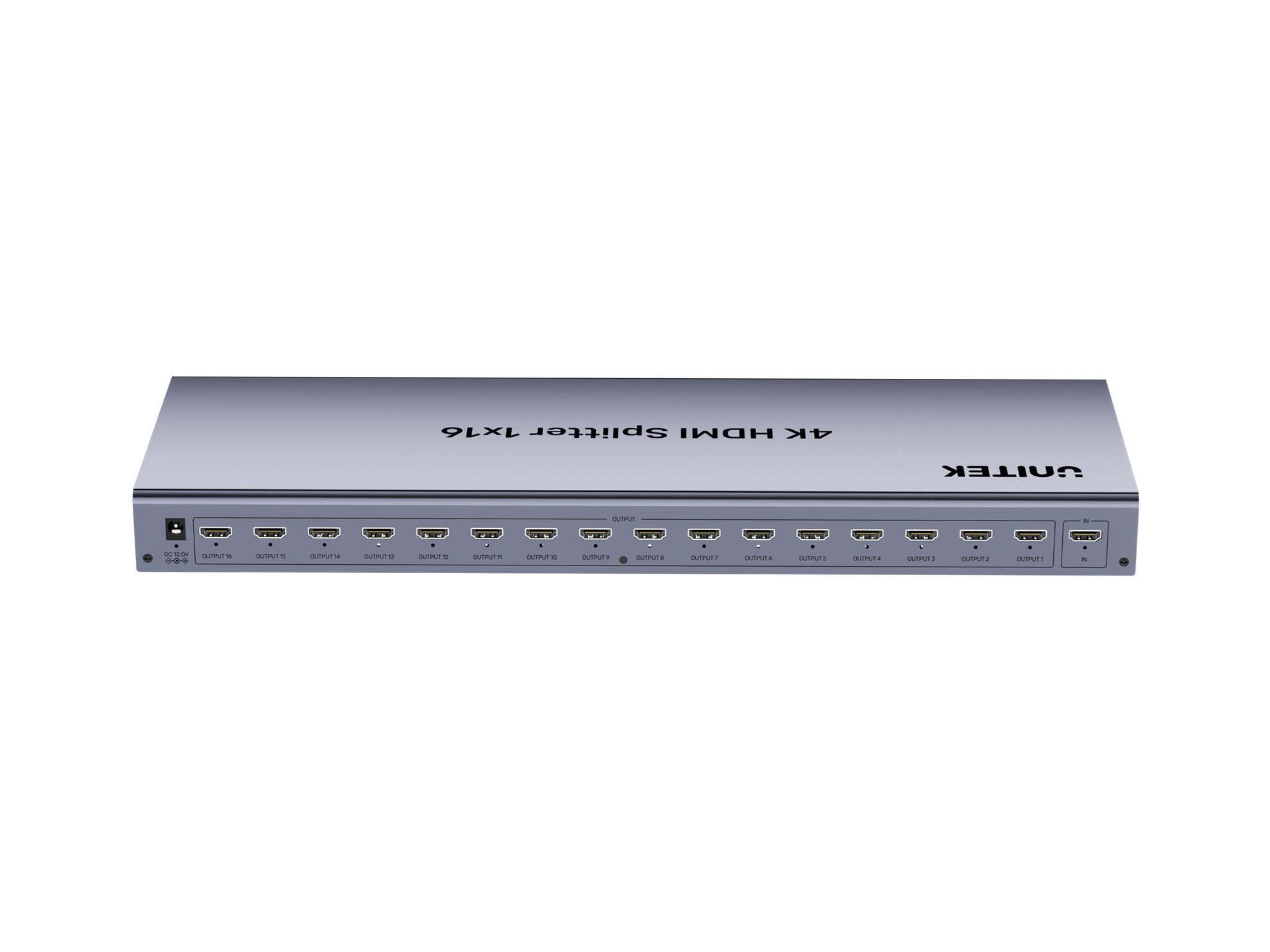 Introducing UNITEK 4K HDMI Splitter 1 In 16 Out. Seamlessly duplicate a single HDMI input to 16 identical outputs. Experience exceptional video and audio quality without loss, making it ideal for presentations, events, and multi-screen configurations. Enjoy vibrant 4K resolution and reliable performance, ensuring your content shines across multiple displays!