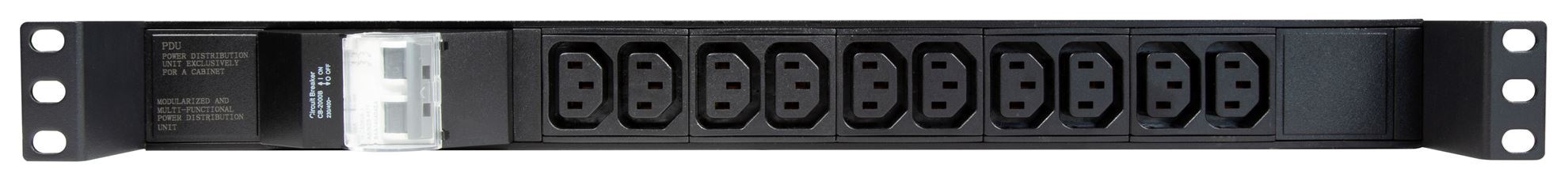 Unmanaged 10 way horizontal IEC power distribution unit with 6KA C-Curve circuit breaker. 10 Amp IEC connector to provide a compact power distribution solution ideal for connecting directly into UPS’s to expand power port availability.