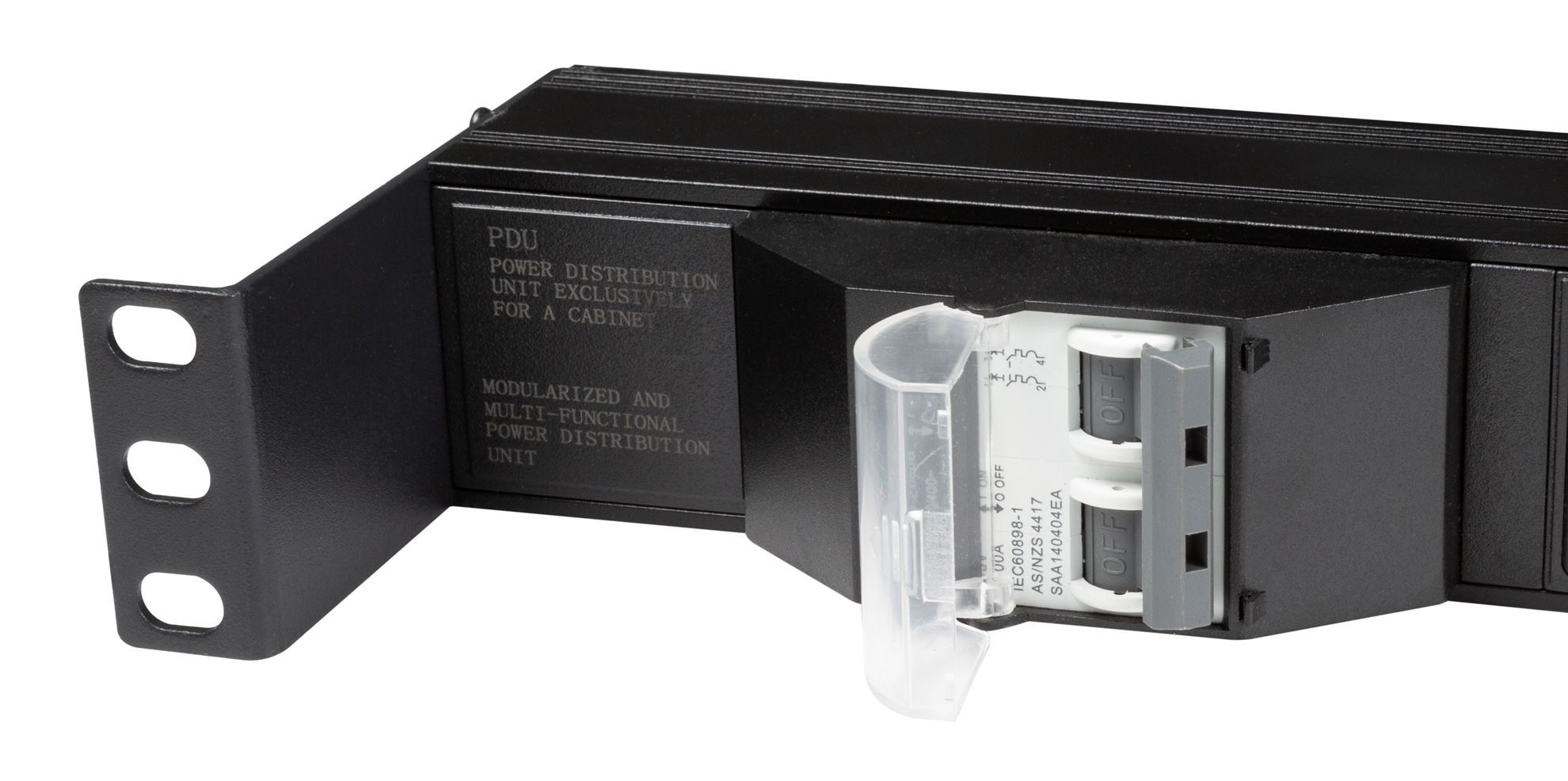 - Horizontal PDU incorporates recessed brackets for cable management