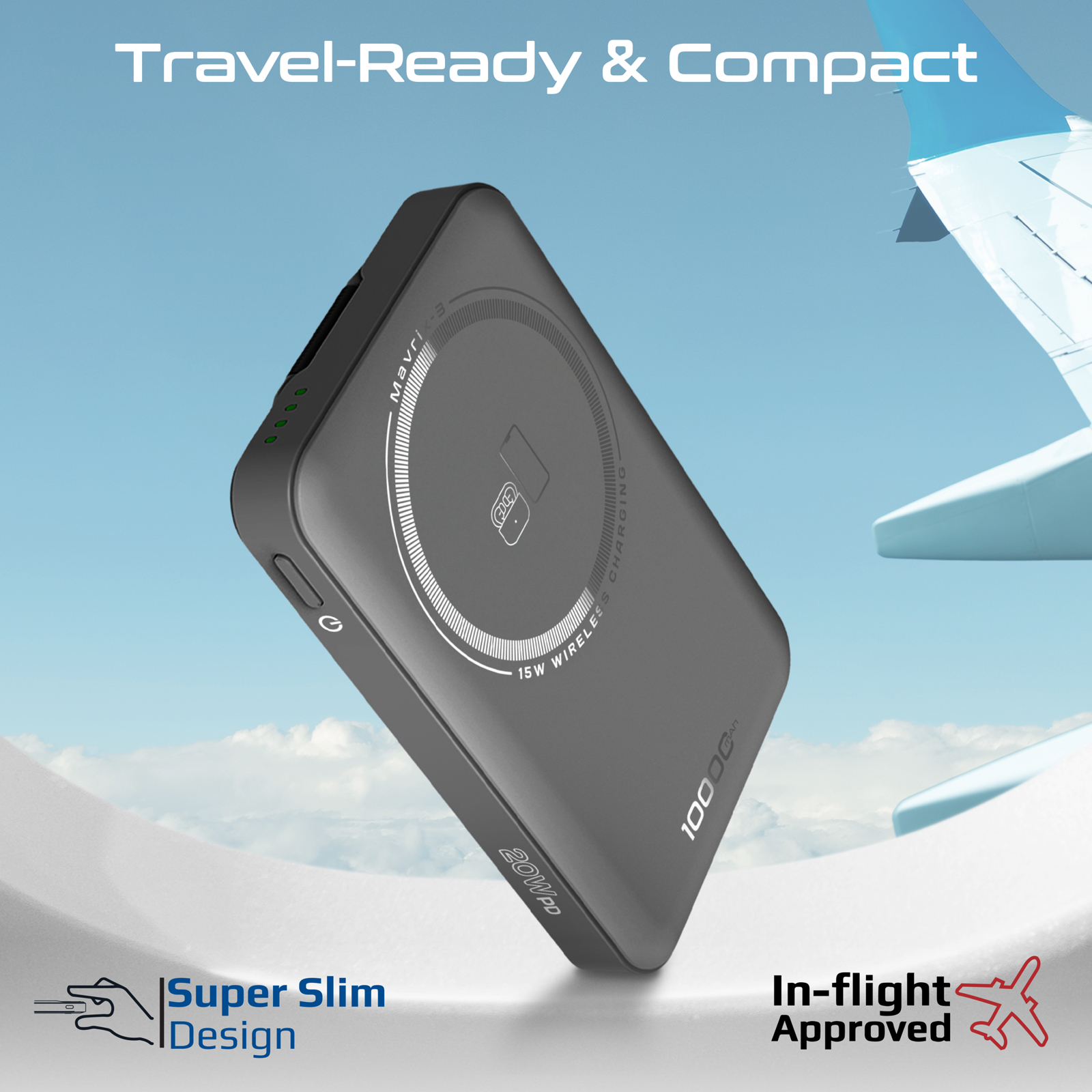 Power meets portability with the Mavrix-3, a next-generation 3-in-1 MagSafe-compatible power bank for your mobile lifestyle. Featuring a 10000mAh Li-Polymer battery in an ultra-slim, lightweight frame, it keeps you charged on the go. Enjoy seamless 15W wireless charging for your iPhone and Apple Watch, plus a 20W USB-C Power Delivery port for fast wired charging. Advanced safety features include overcharging protection, overheating prevention, and FOD (Foreign Object Detection). The intelligent power flow system prioritises external battery use to reduce iPhone battery strain. Powerful N52 magnets ensure secure MagSafe alignment, while a foldable zinc-alloy kickstand turns it into a mini dock for hands-free viewing. Crafted with premium materials, Mavrix-3 is durable, travel-safe, and fits seamlessly into your Apple ecosystem.