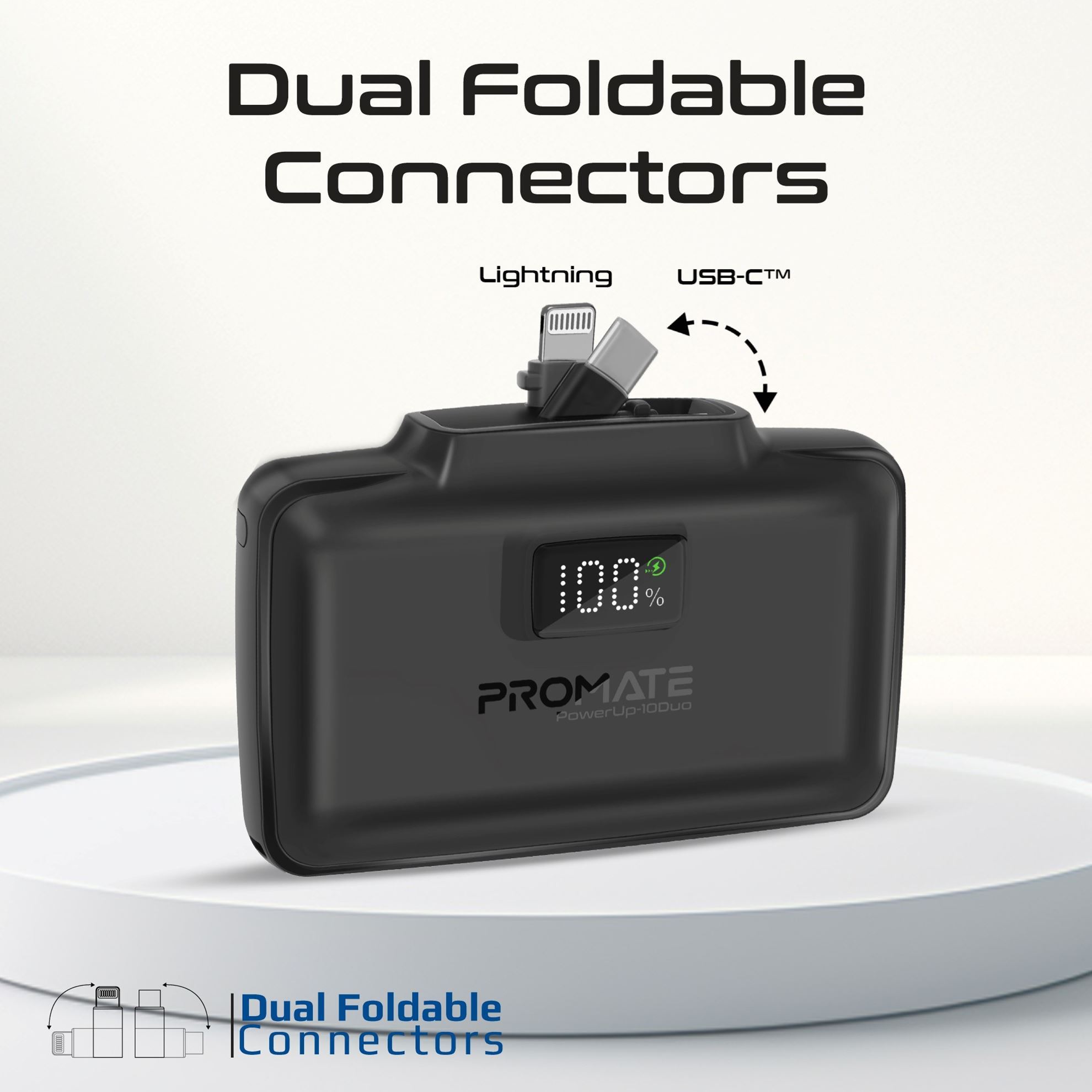 • Dual Foldable Connectors: The PowerUp-10Duo features built-in, foldable USB-C™ in/out and Lightning connectors for seamless charging.