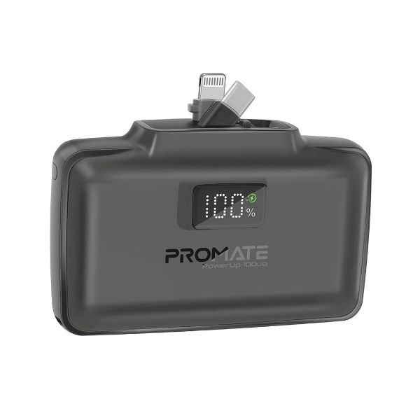 Promate’s PowerUp-10Duo is a revolution in portable power, with an unprecedented capacity-to-size ratio. This mini power bank packs serious energy thanks to its 10,000 mAh battery, which provides double the power compared to other mini power banks in the market. With built-in foldable 20W USB-C™ and Lightning connectors, plus an additional 20W USB-C ™ in/out port, it effortlessly charges multiple devices at lightning-fast speeds. The LED battery display keeps you informed, while advanced overcharging and overheating protection ensure safety with every charge. The PowerUp-10Duo fits seamlessly into your pocket or bag and even features a convenient integrated kickstand, making it the perfect travel companion.