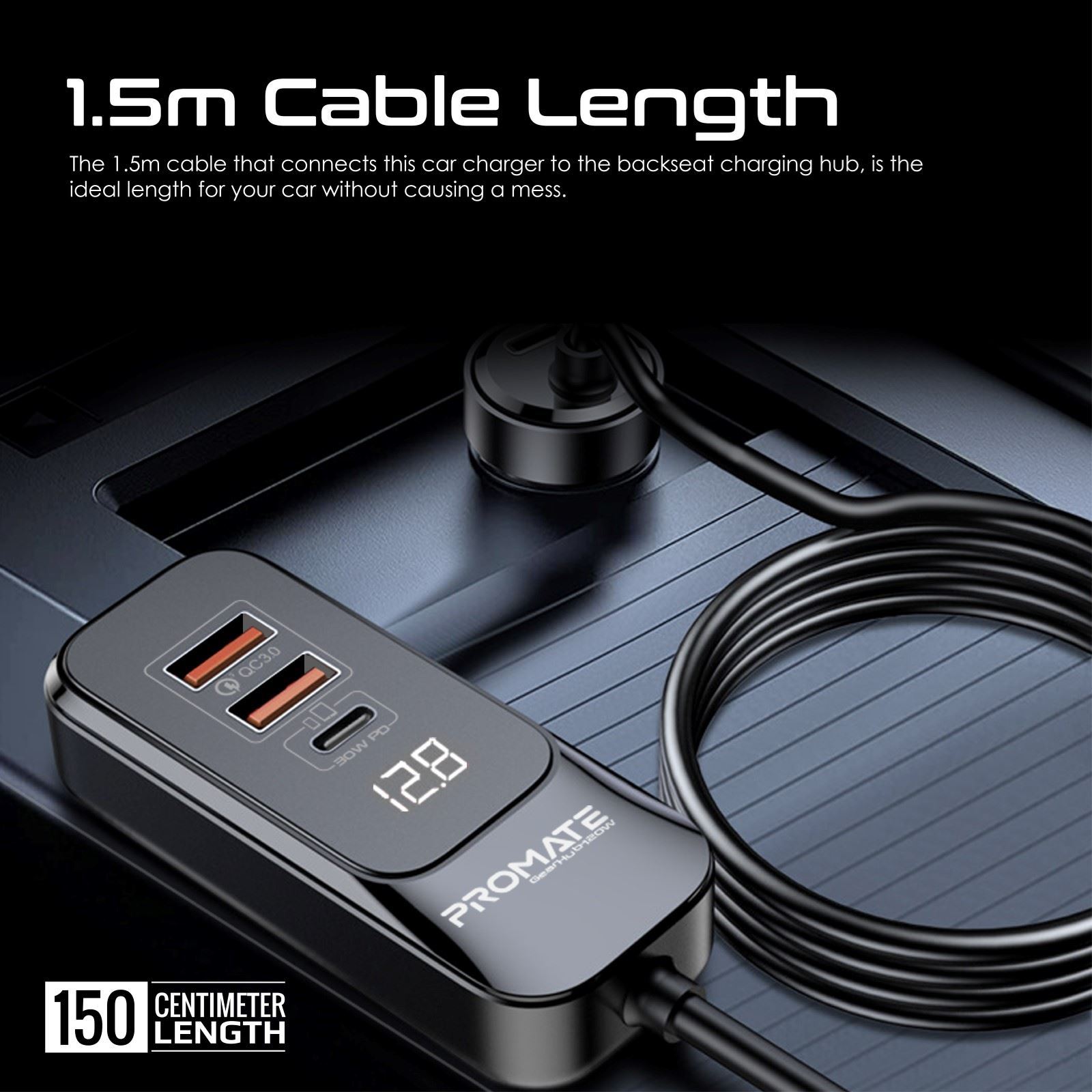 Engineered to maximize convenience, GearHub-120W has an extended backseat charging hub, connected by a 1.5m cable, allowing all passengers to simultaneously charge their electronic devices easily. The 1.5m sturdy cable, is the ideal length for your car without causing a mess.