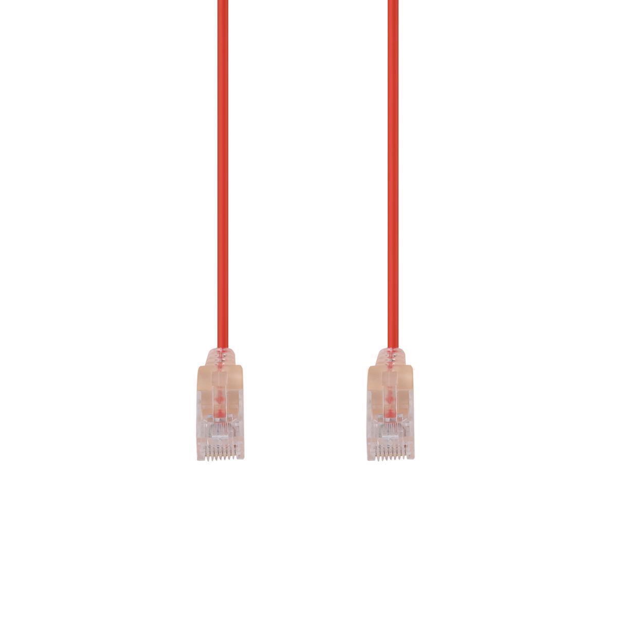 DYNAMIX 1.25m Cat6A 10G Red Ultra-Slim Component Level UTP Patch Lead (30AWG) with RJ45 Unshielded Gold Plated Connectors. LSZH Outer Jacket. Supports PoE IEEE 802.3af (15.4W).