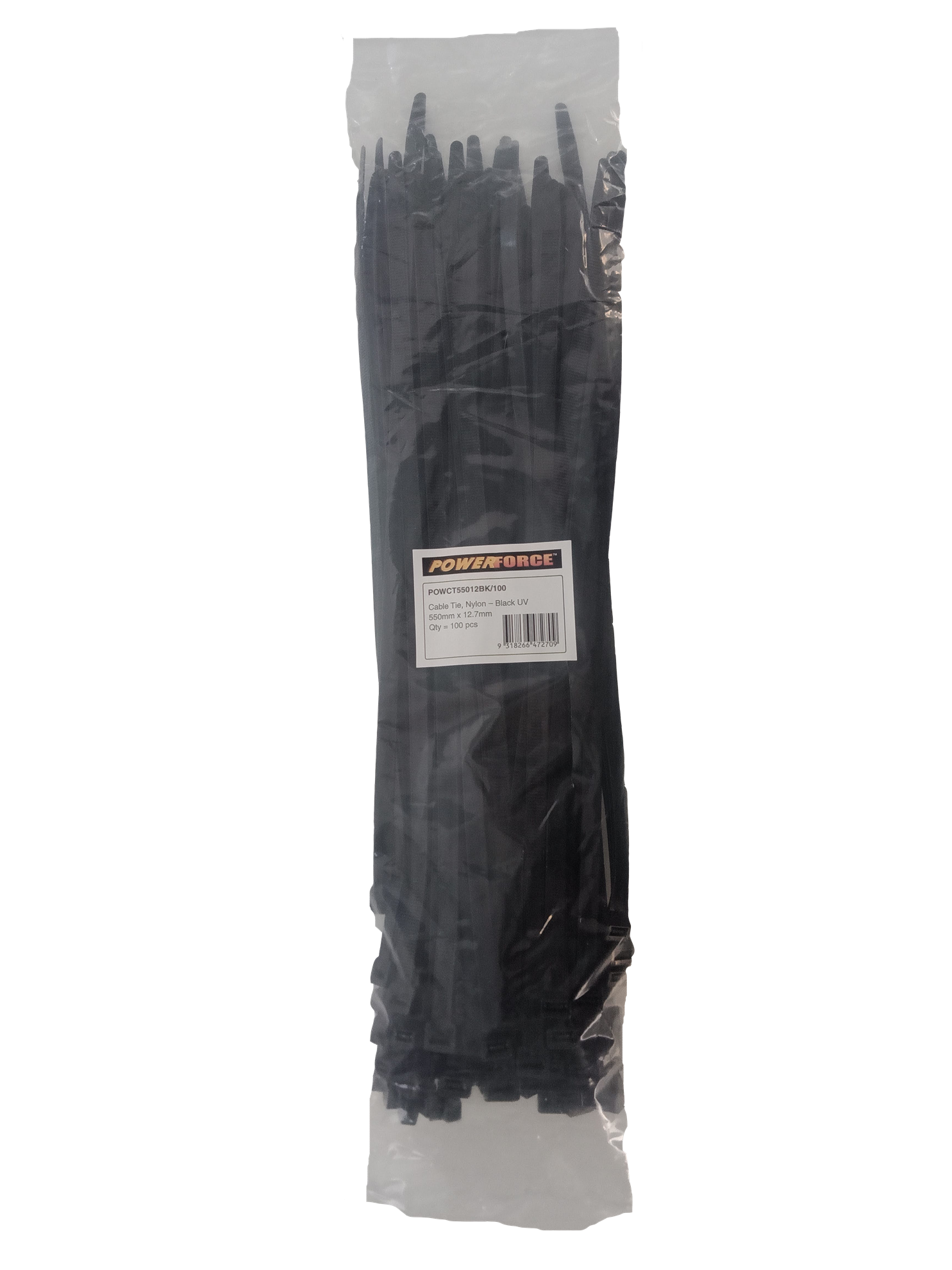 12.7 x 550mm Black UV Cable Ties Pack of 100 114kgs Tensile Strength