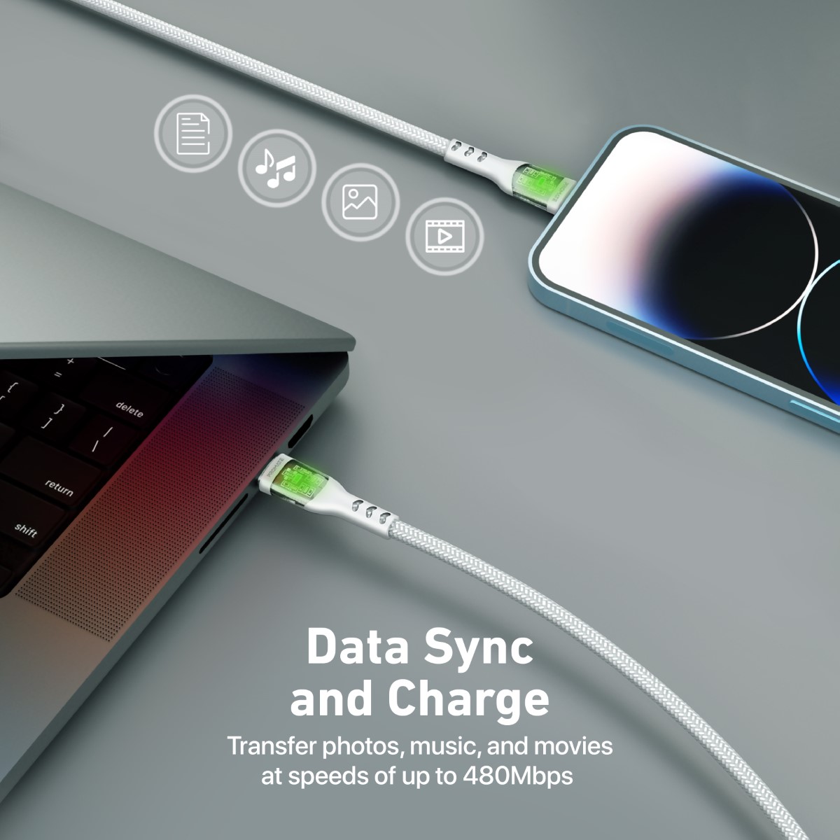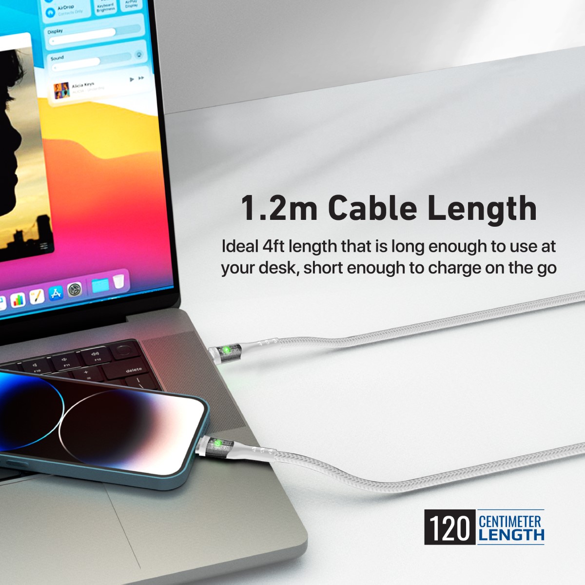 - 1.2m Cable Length - Ideal 4ft length that is long enough to use at your desk and short enough to charge on the go Data Sync and Charge Transfer photos, music, and movies between USB-C devices and Apple iPhones, and iPads at speeds of up to 480Mbps