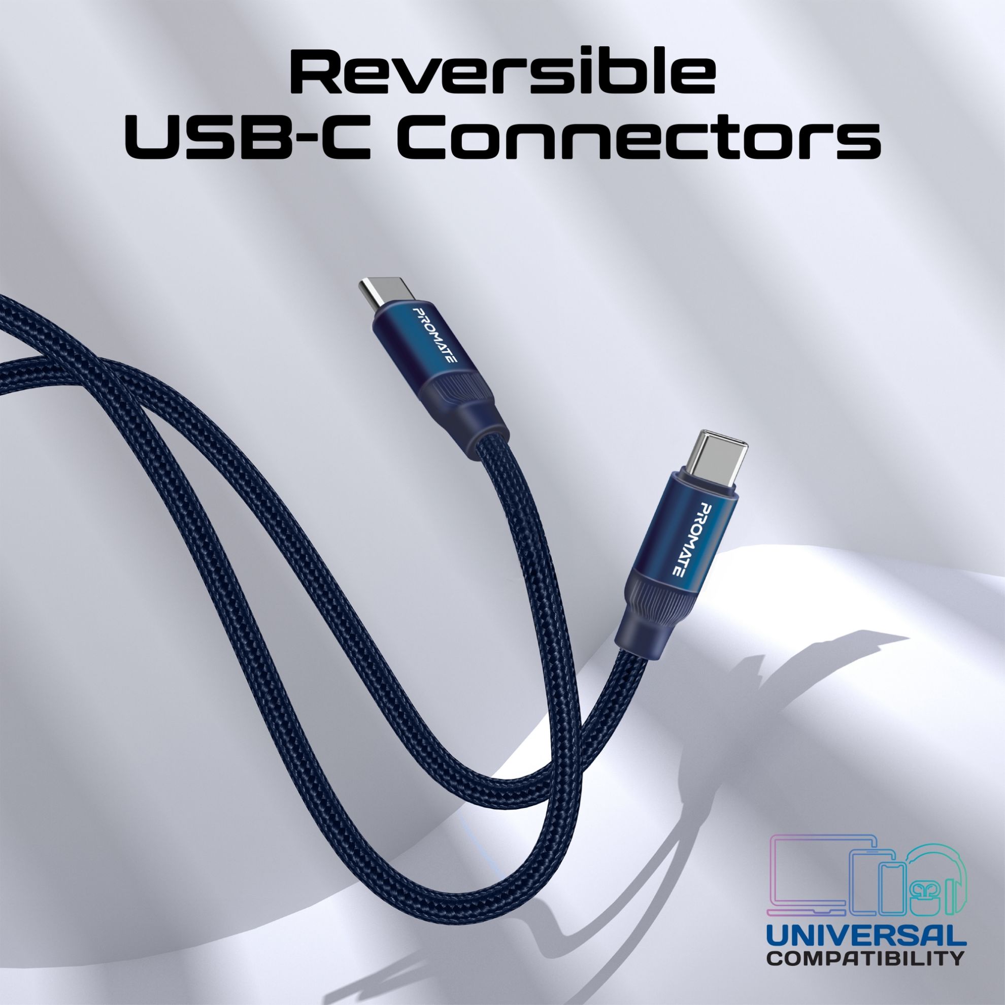 Reversible USB-C™ connectors on both ends ensure easy, frustration-free plug-in every time, with no need to check orientation.