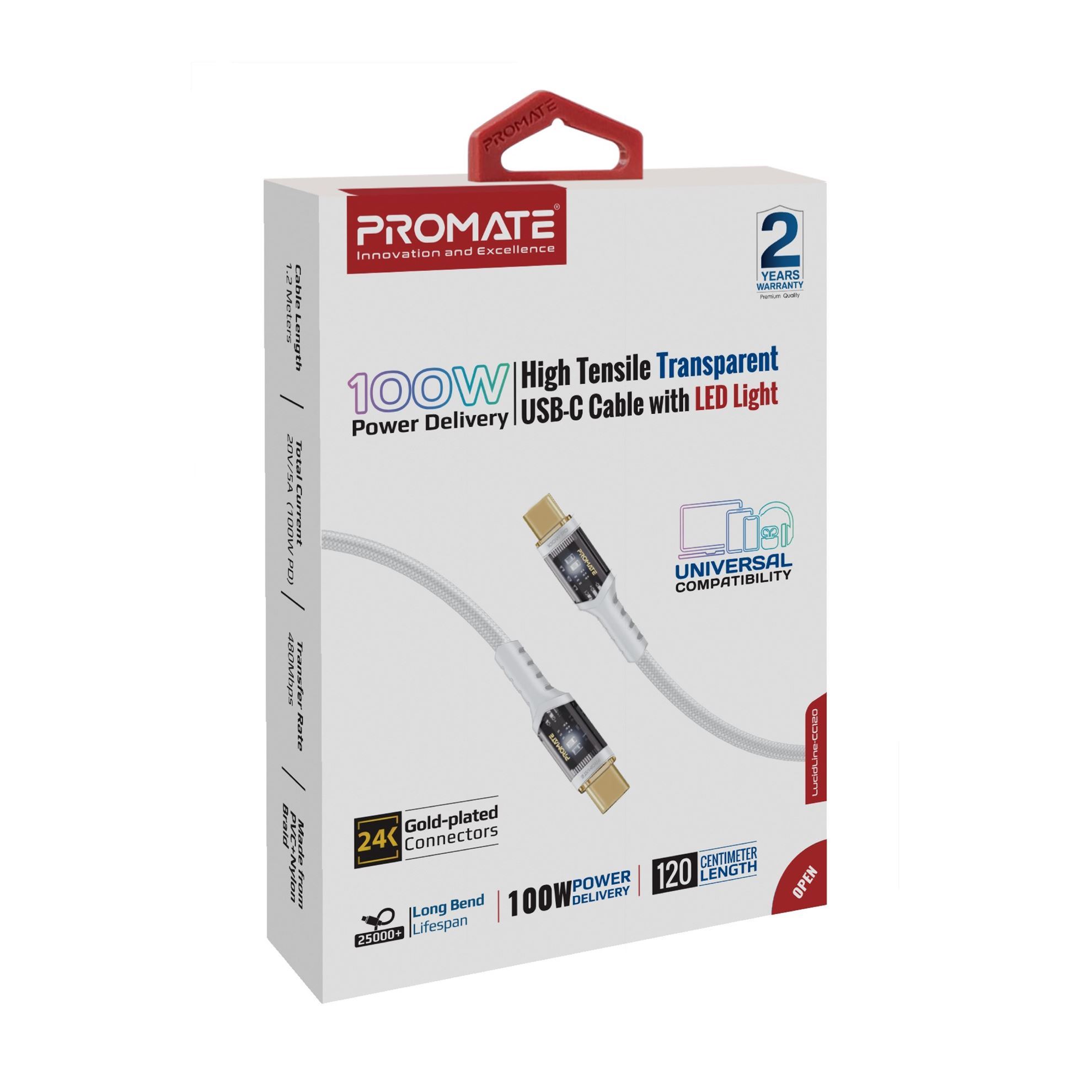 The Promate LucidLine-CC120 comes with gold-plated, corrosion-resistant connectors, that deliver optimal power output. The gold-plated connector also gives your devices a stable and ultra-fast charging experience.