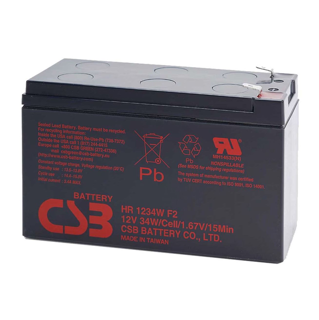 CSB 12V 9.0 AH Replacement UPS Battery - 1 Year Warranty. To suit: UPSD650; UPSG750; UPSD1200 UPSD1600; PSCRT1100; PSCE1000; PSCE2000; PSCE3000. F2 connector, 6.35mm. HR1234WF2