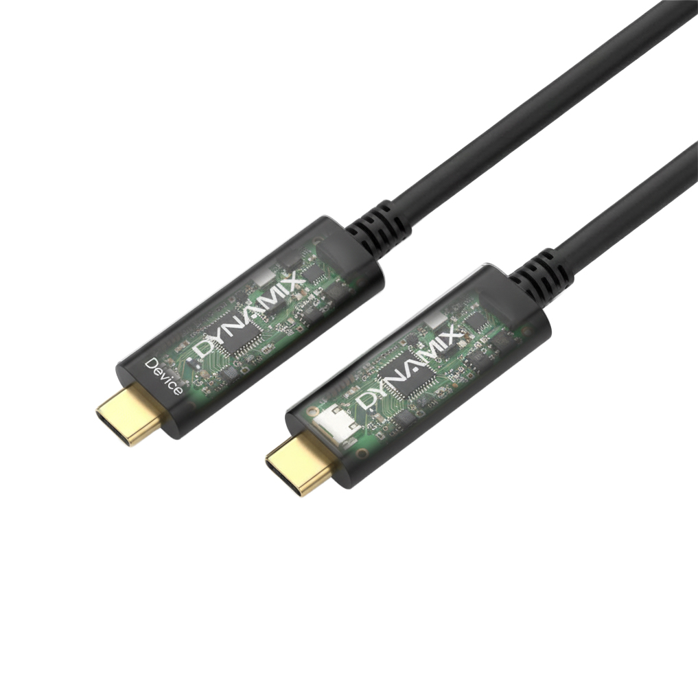 The DYNAMIX C-U32-LL-CC is a USB 3.2 Gen2 Type-C to Type-C Active Optical Cable (AOC) designed for high-speed data transmission over extended distances. Utilizing a hybrid copper & fiber architecture, it enables stable 10gbps data transfer while minimising signal loss & eliminating electromagnetic interference (EMI), making it ideal for long-distance USB connectivity beyond traditional copper limitations.