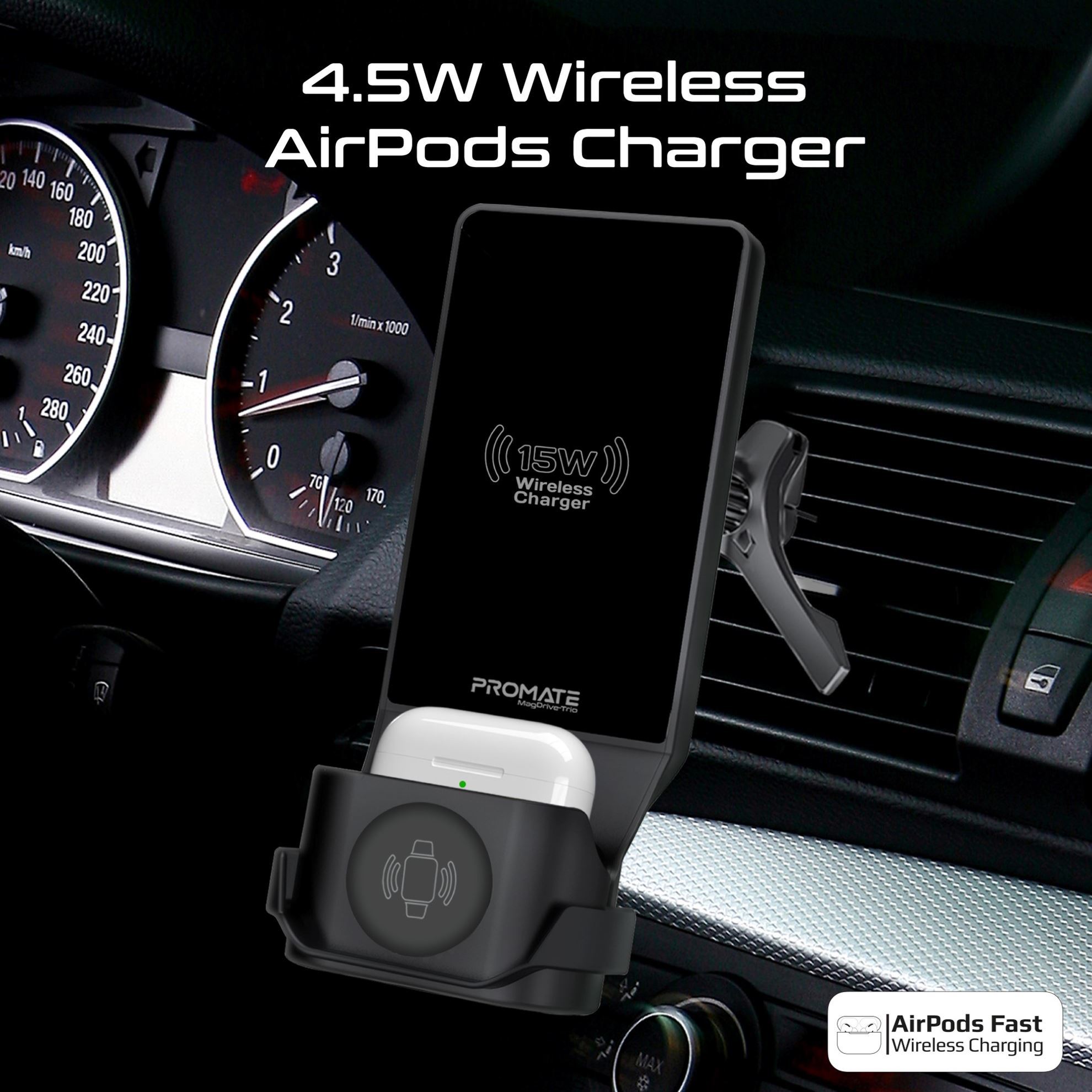 Transform your driving experience with Promate’s MagDrive-Trio, a cutting-edge 3-in-1 car charging station. Designed to power your phone, AirPods, and Apple Watch simultaneously, it ensures all your essential devices are charged and ready to go. With this versatile solution, you'll never need to juggle multiple chargers again. Perfect for busy commutes or long road trips, it keeps your tech in top shape while you’re on the move.