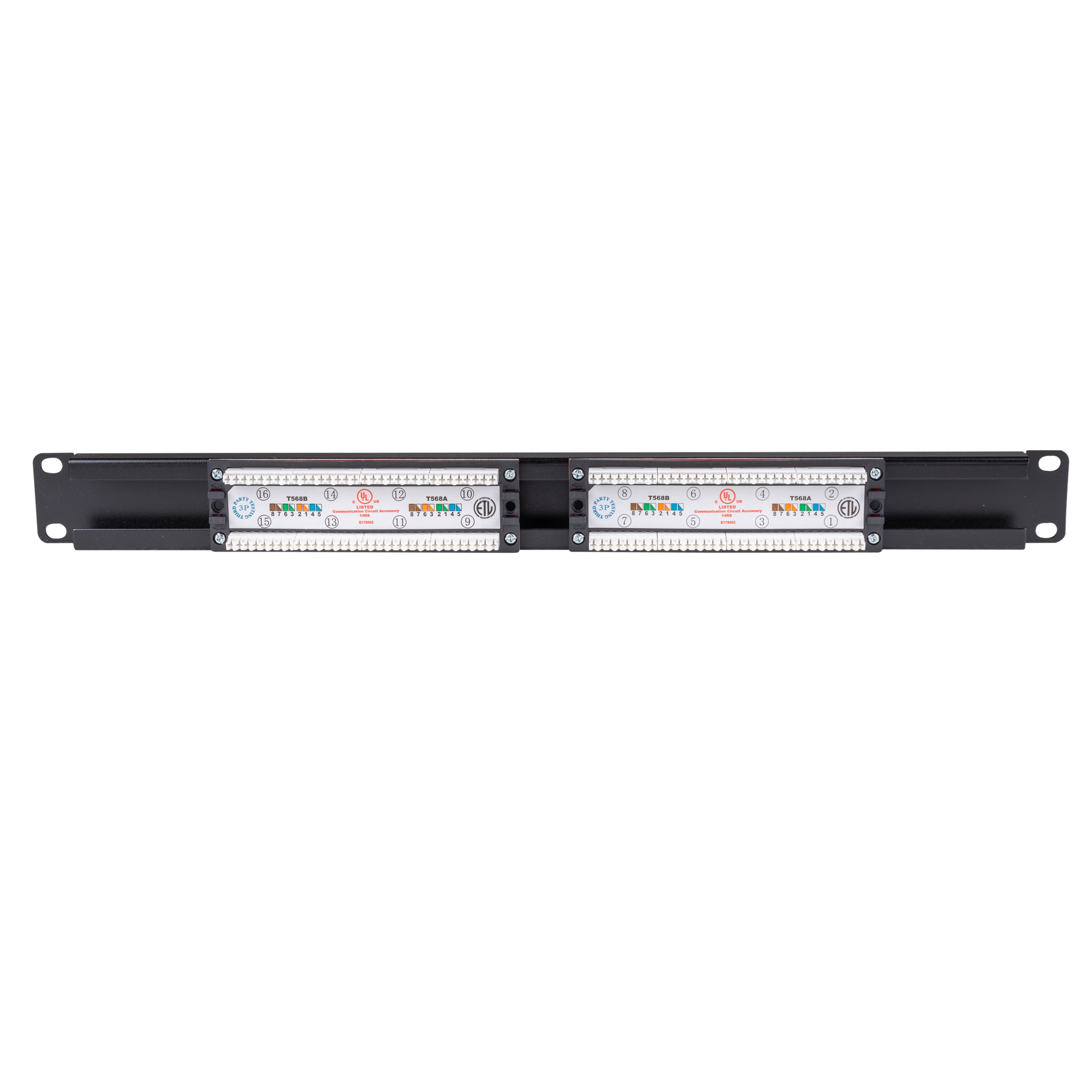 16 Port 19'' Cat6 UTP Patch Panel T568A & T568B Wiring 1RU 110x Terminations