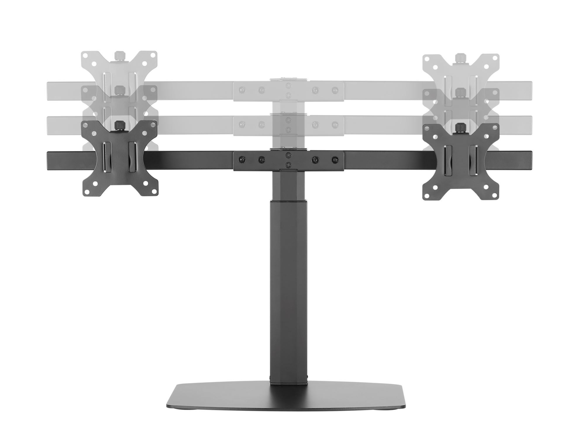 LDT22-T02 comes packed with user-oriented features such as removable VESA mounting plates, monitor height adjustment, and integrated cable management. It raises two 17"-27" monitors in a horizontal line to clear up your valuable work surface, at the same time allowing for ergonomic viewing, which encourages healthy body positioning. Cable clips and tool holders will come in handy to support a clutter-free workspace.