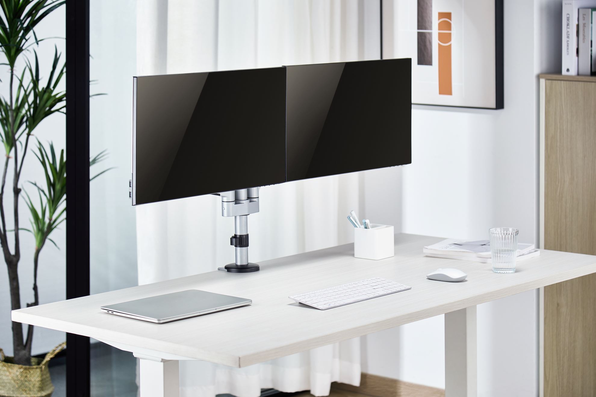 A brand-new Aluminum Articulating Monitor Arm(s) is exceptionally designed for premium workplace scenarios. It offers a clamp/grommet base, so it's compatible with most desk types and user needs. Easy to install your monitor from 17”~32” via a detachable VESA plate, all settled in a neat look.