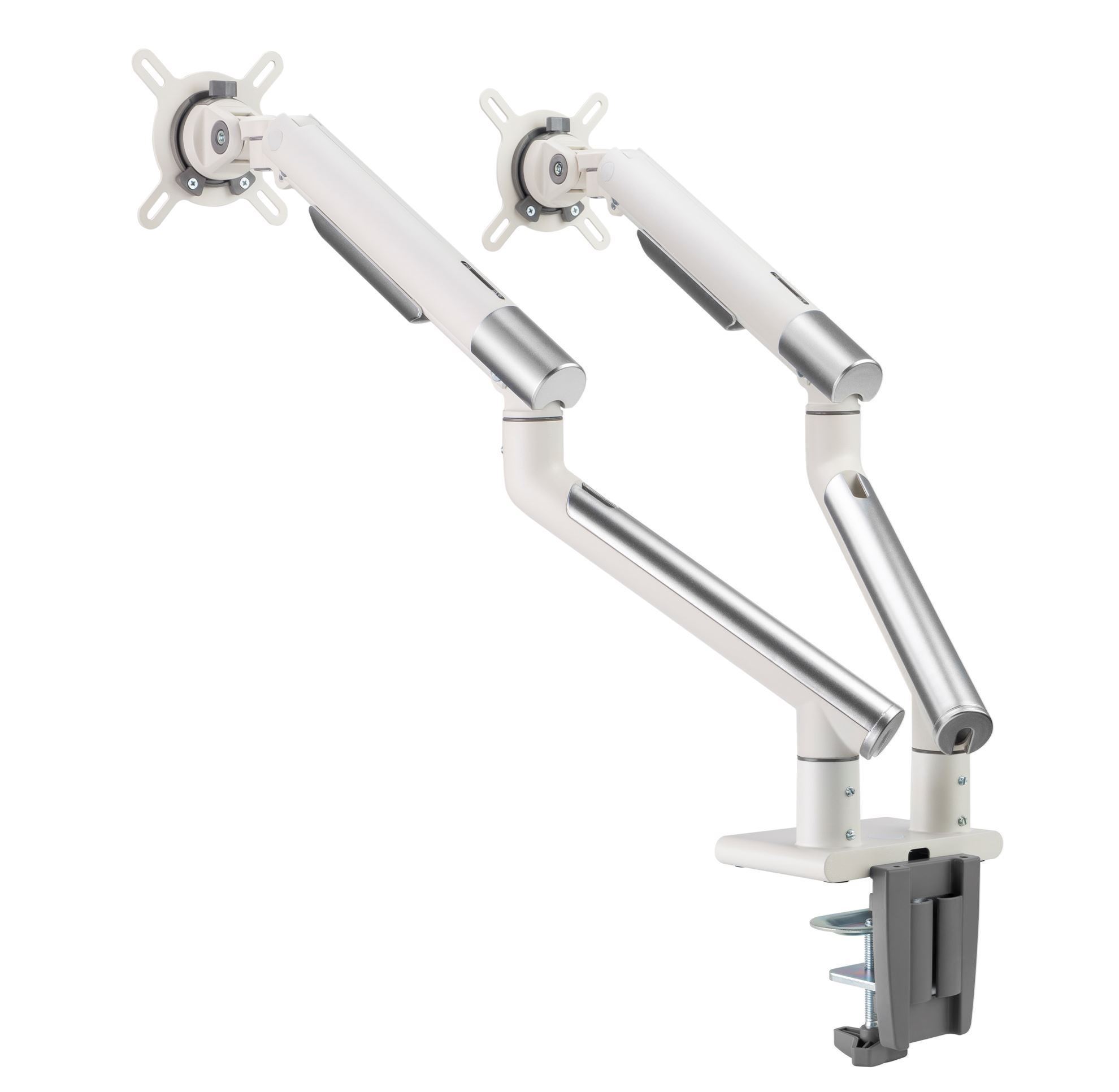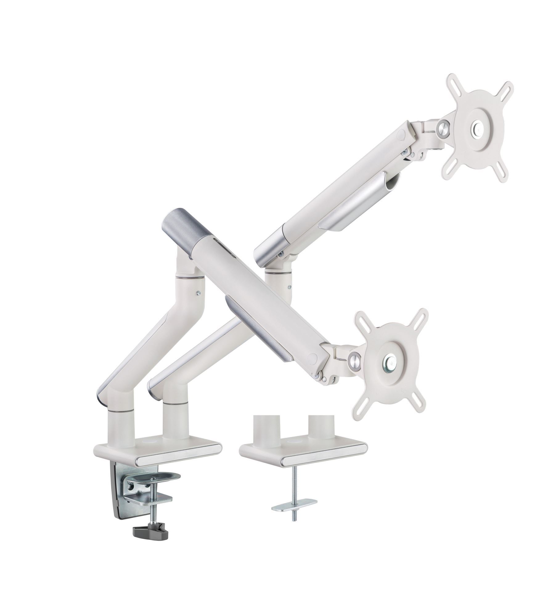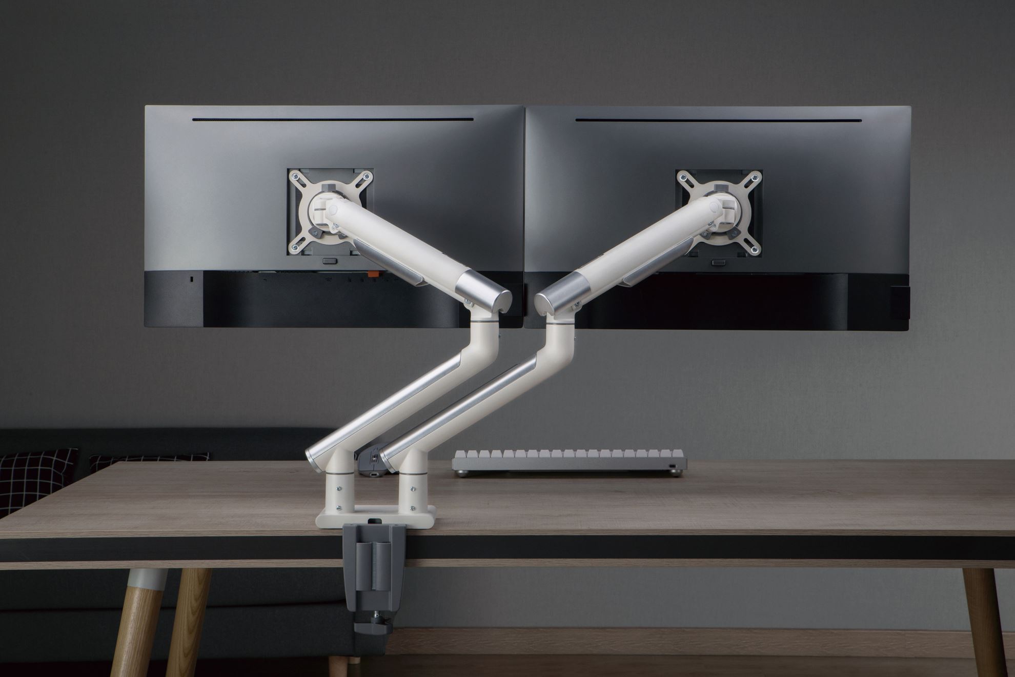 Featuring slim arms and outstanding flexibility, the LDT49-C024 Premium Aluminium Monitor Arm combines a great look and smooth movement, resulting in a better work experience. The internal spring mechanism provides safe and secure movements. This monitor arm is ideal for applications requiring frequent display adjustments, including financial analysis, creative work and more. Perfect for where frequent display adjustment is required. A quick-release VESA plate allows for effortless monitor installation and removal. A visible tension indicator assists with adjusting multiple arms and displays the correct balance. Built-in 180° rotation-stop prevents interference with the wall or partitions. The cable management conceals the wires for a clutter-free appearance.