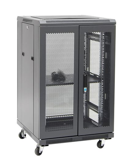 Our DYNAMIX SR series network server cabinets are an ideal solution to protect sensitive electronic networking equipment such as your server, network and telecommunications equipment in a sturdy, stable and mobile rack cabinet constructed from highly durable heavy-gauge steel. A tempered tinted glass front door ensures easy viewing and monitoring of equipment readouts while dual rear mesh doors provide additional air circulation and venting. Fully adjustable mounting rails and square mounting holes can accommodate various depth rack equipment. The DYNAMIX server cabinets are supplied standard with accessories including pre-installed fixed shelves, 2.5” heavy duty caster wheels & levelling feet, locking system, grounding pins, earthing wires, removable side panels, 4x cooling fans, and 6-way PDU (27RU and above). The cabinets are available in a wide variety of sizes from 12RU to 45RU.