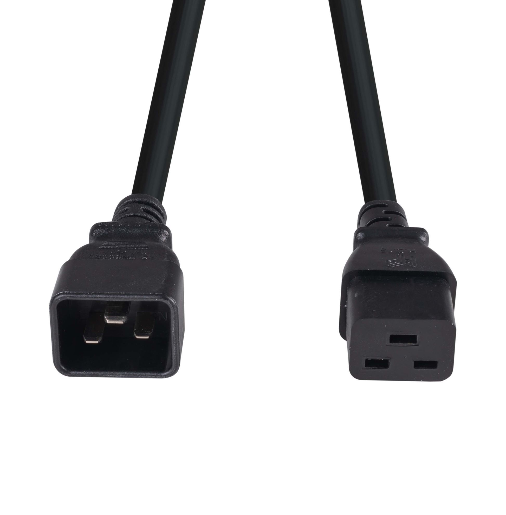 1M IEC 16A Power Extension Cord (C20 Plug to C19 Socket) 15mm2 Black