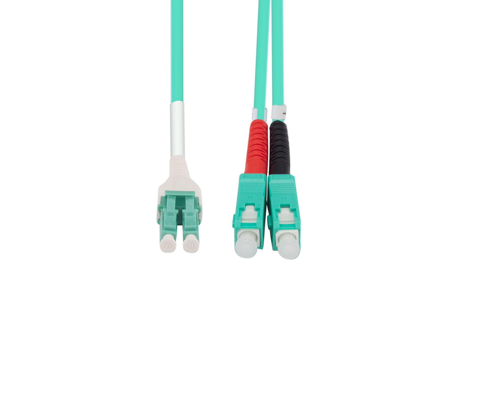 DYNAMIX 1M LC to SC OM3 Uniboot Elite Low-loss 50u 3mm Multimode Duplex Fibre Lead. Aqua LSZH Jacket