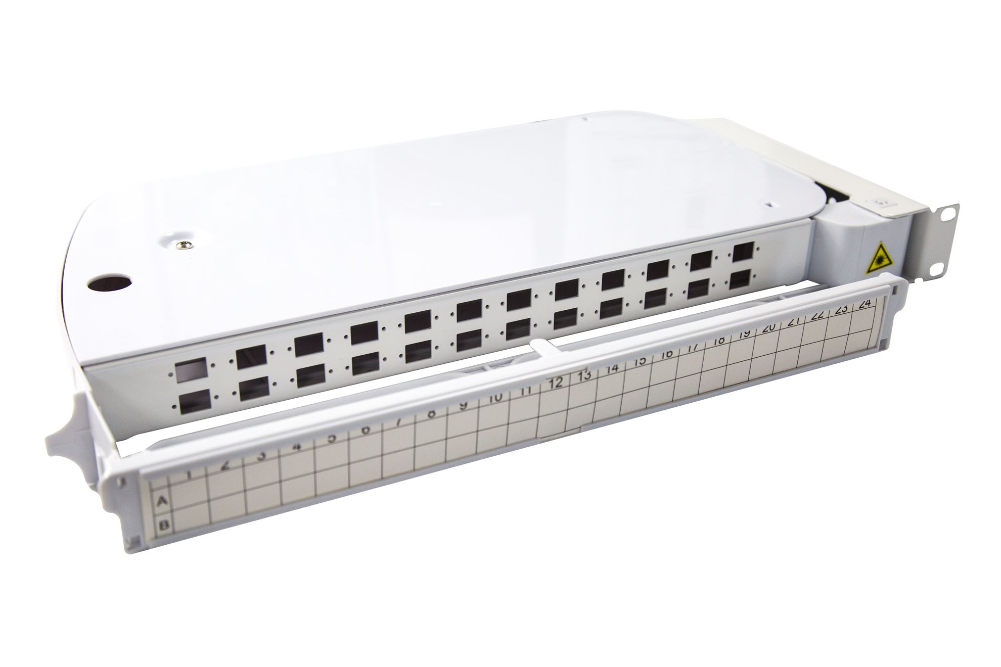 ODF Rotary 1U panel is made of plastic ABS material and cold rolled steel pivotal bracket. An innovative high-density pivot panel designed to accept up to 24 SC simplex footprint adapters. The panel can pivot by up to 110° to allow easy access during installation or rework with no disturbance of the existing cable or fibres.