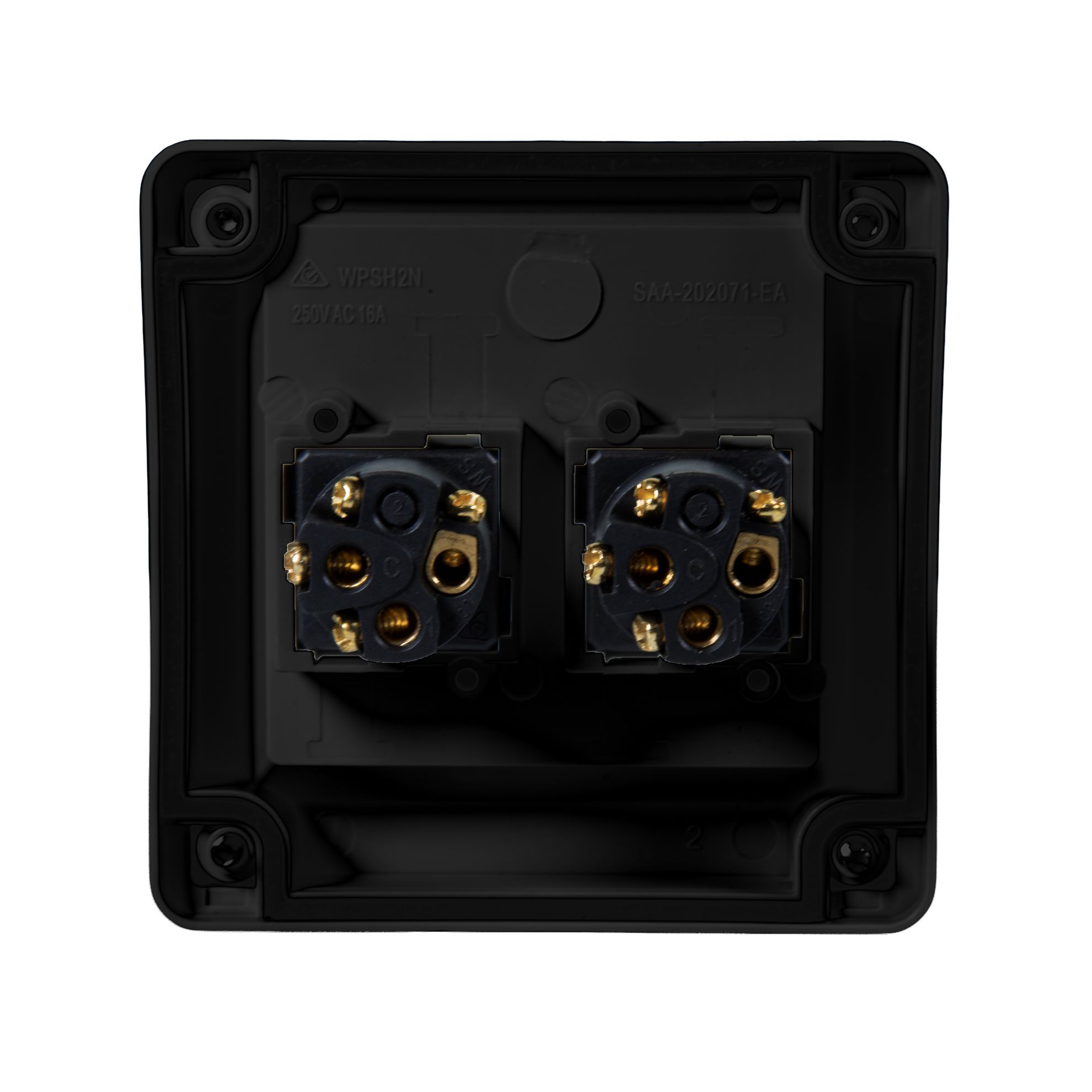 TRADESAVE 2 Gang Weatherproof Black Switch, 15A, IP66, Grey Heavy Duty Industrial Grade Virgin Plastic UV Stabilised, Surface Mounted.