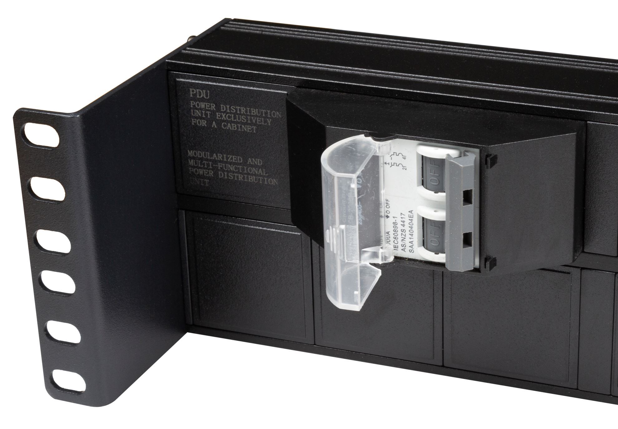 - Horizontal PDU incorporates recessed brackets for cable management