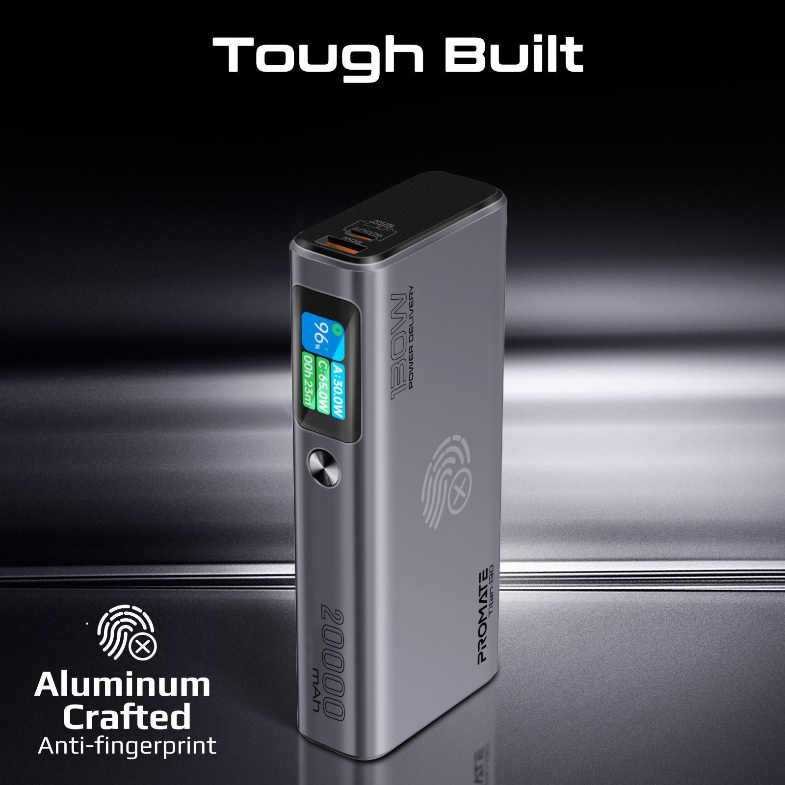 Titan-130 is your ultimate power companion with a robust 20000mAh lithium-ion battery for portable charging. Boasting a 30W USB-A Quick Charge 3.0 port and dual 60W and 100W USB-C Power Delivery 3.0 input/output ports, this slim and lightweight power bank charges 3 of your devices rapidly. With a convenient TFT LCD screen and metal construction, this sleek power bank ensures safe and efficient power management for your every adventure. Unleash the Power: Titan-130 is your compact powerhouse for unlimited charging on the go.