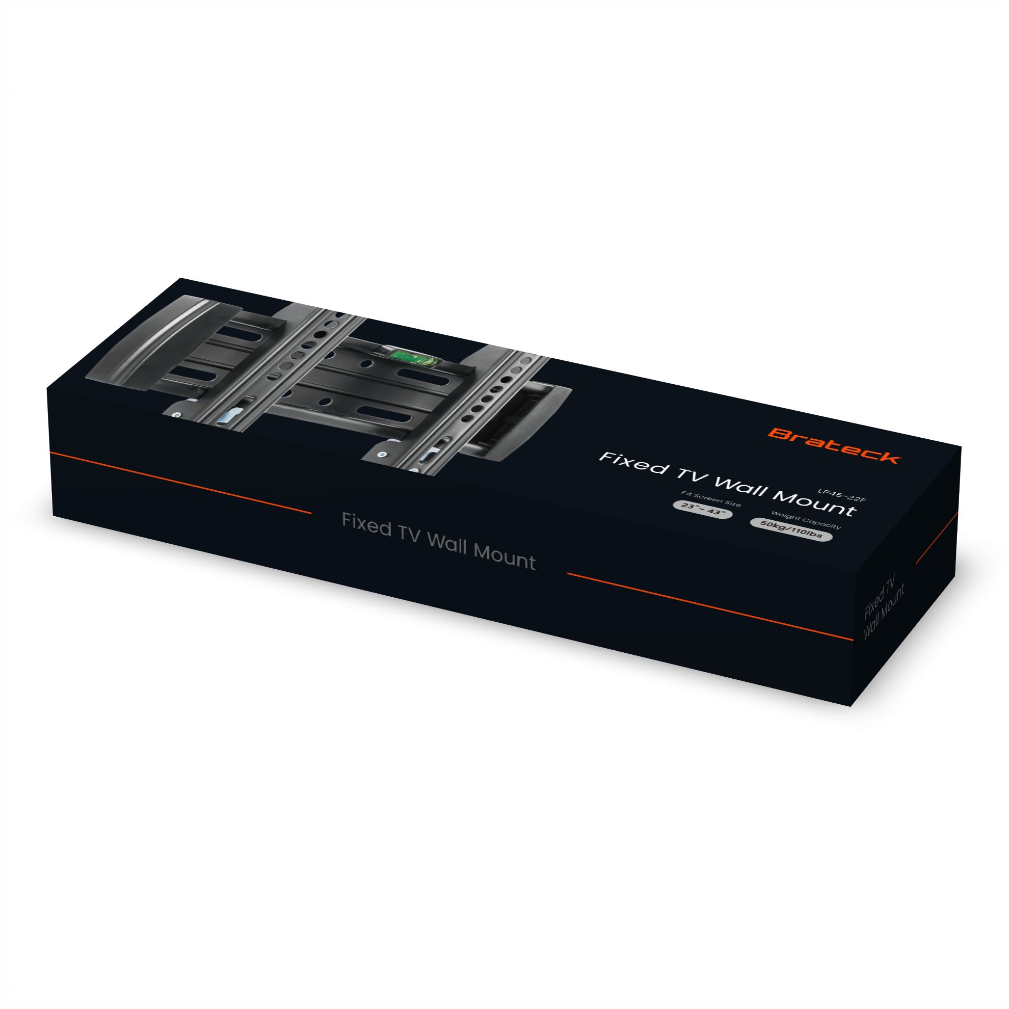 The LP45-22F is a fixed wall mount for 23"~42" flat-panel TVs. Its solid heavy-gauge steel construction offers a sleek, high-tech look while providing strength and durability. Adjustable TV brackets offer lateral shift ability to allow perfect TV placement. Its automatically click-in spring lock with easily-release cord easily and securely attaches your TVs to the wall. Universal mounting pattern fits virtually any LCD or plasma TV up to 50kg/110lbs. Compatible with VESA hole up to 200x200.
