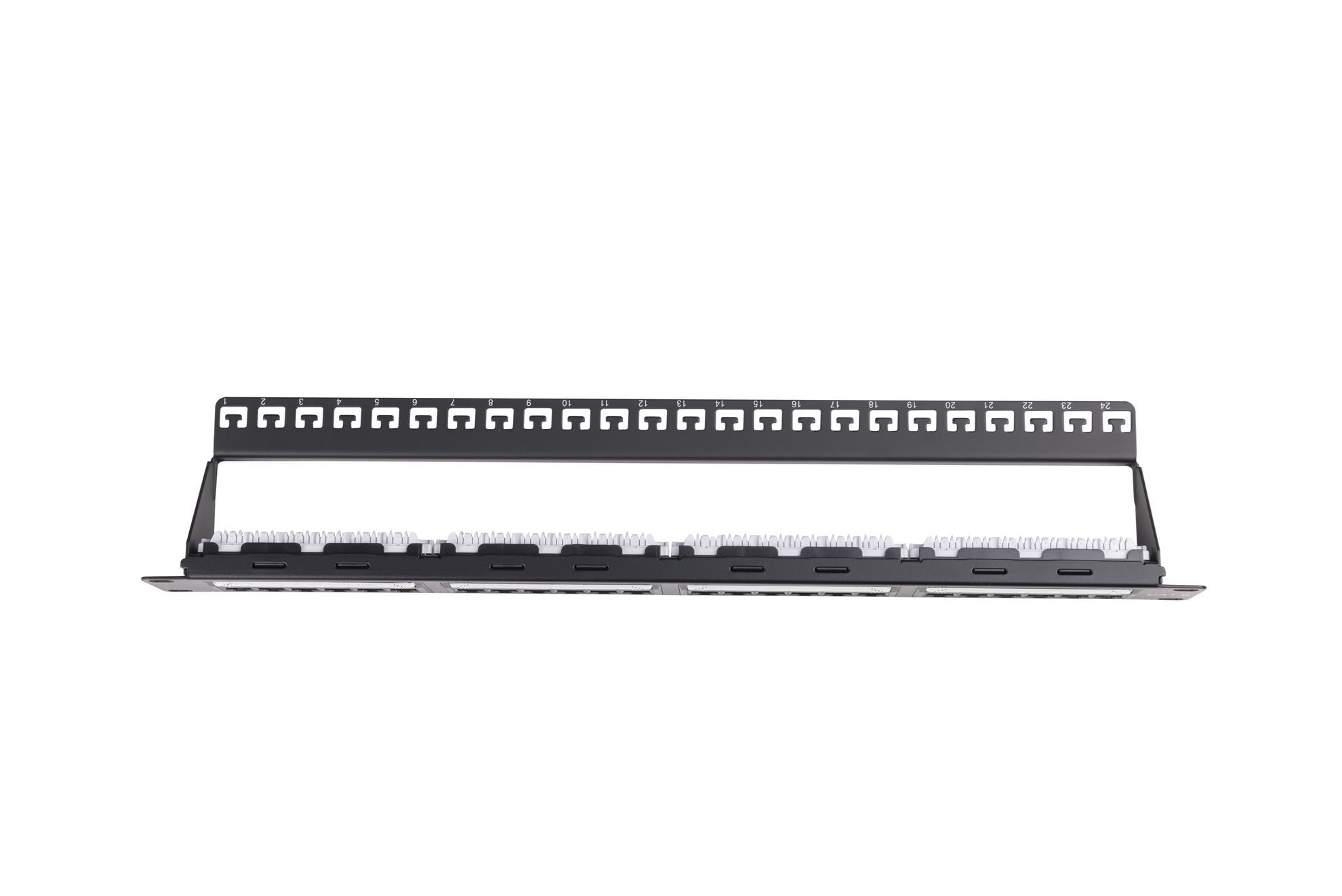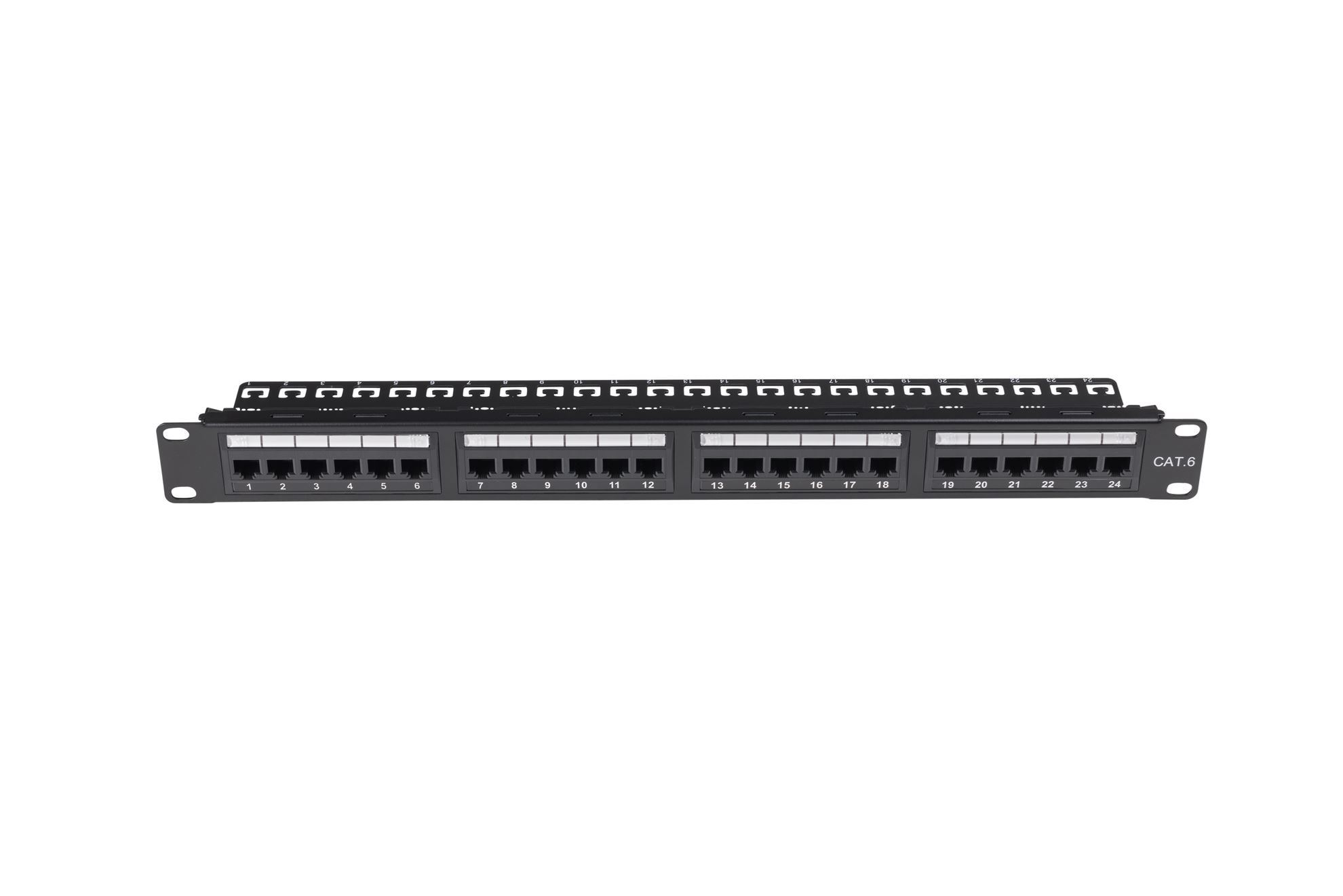 24 Port 19'' Cat6 UTP Patch Panel plastic labelling kit. Rear Support Bar. T568A &