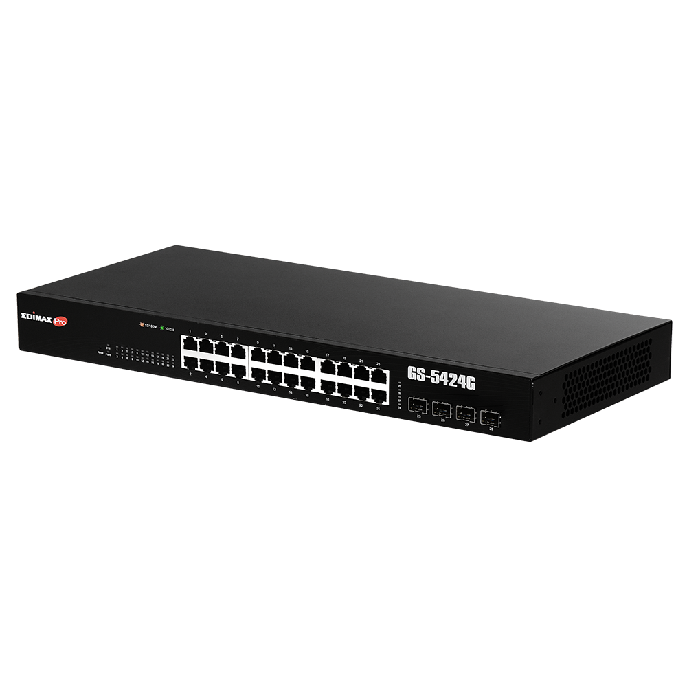 Complies with IEEE802.3/802.3u/802.3ab/802.3z Gigabit Ethernet Standards, the GS-5424G features 24x Gigabit Ethernet ports for high-speed, large file transfer and 4x SFP slots for long range optical fibre Gigabit Ethernet connections.