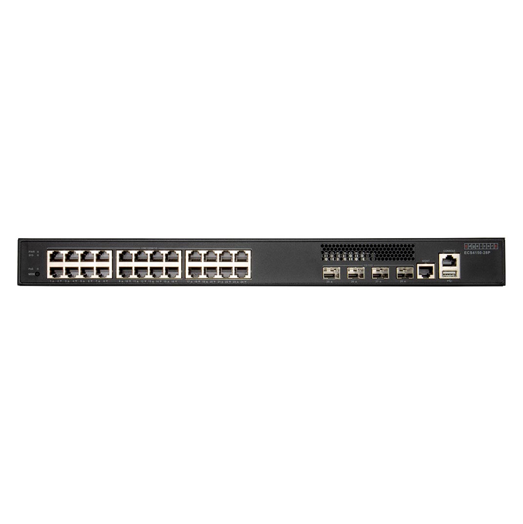 The ECS4150-28P is a PoE switch which can provide up to 30 Watts to Power Devices such as Wireless Access Point, VoIP Phone, Surveillance camera, IoT devices etc over Cat 5 UTP cable eliminate the need for individual power source. The ECS4150-28P is packed with features that bring high availability, comprehensive security, robust multicast control, and advance QoS to the network edge, while maintaining simple management. The switch also supports the most advance IPv6 management, IPv6 security, and IPv6 multicast control in accordance with the growth of IPv6 deployment.