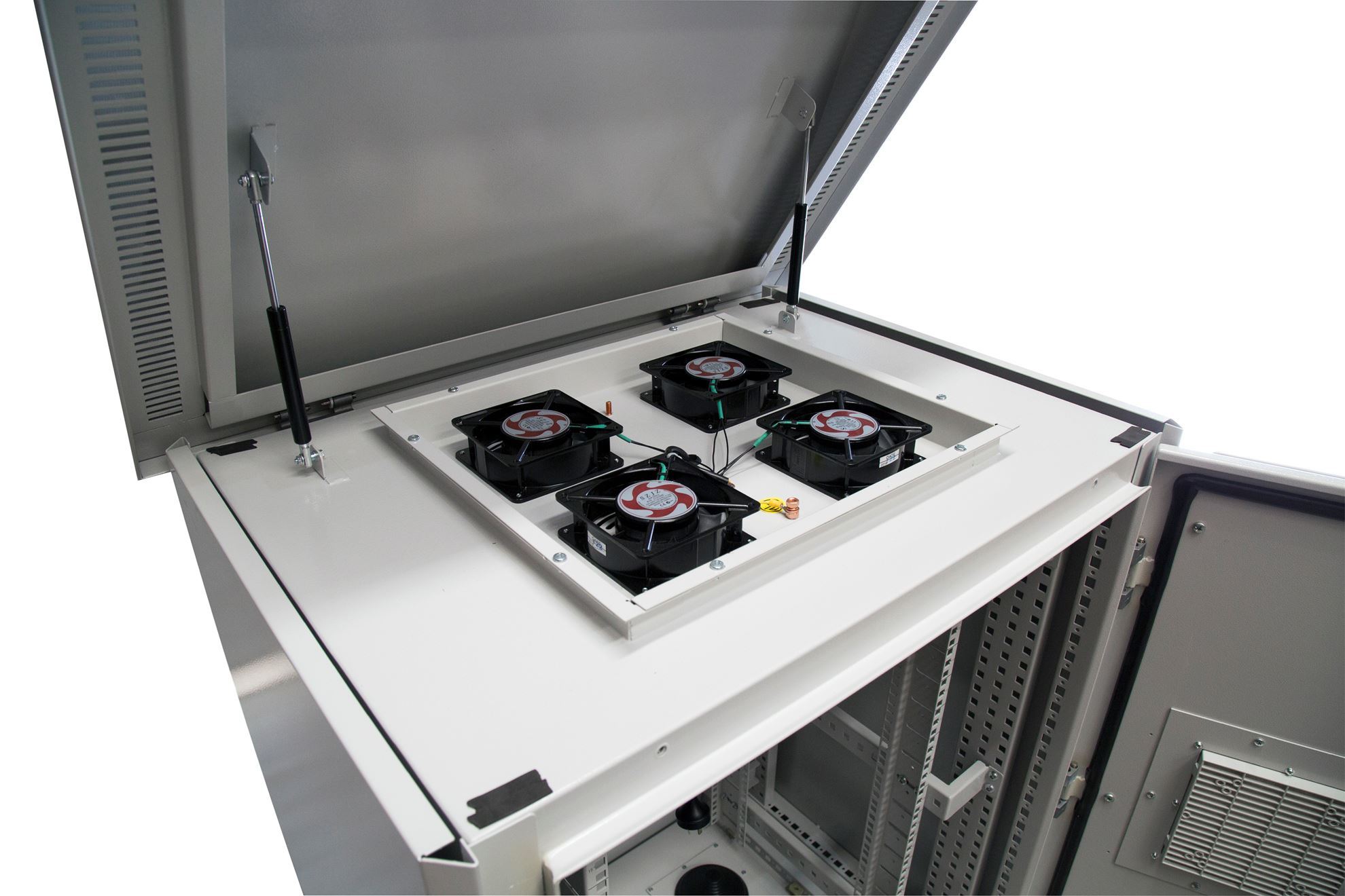 • Cabinet also has four fans with dustproof cover in the top of the cabinet for greater airflow/cooling