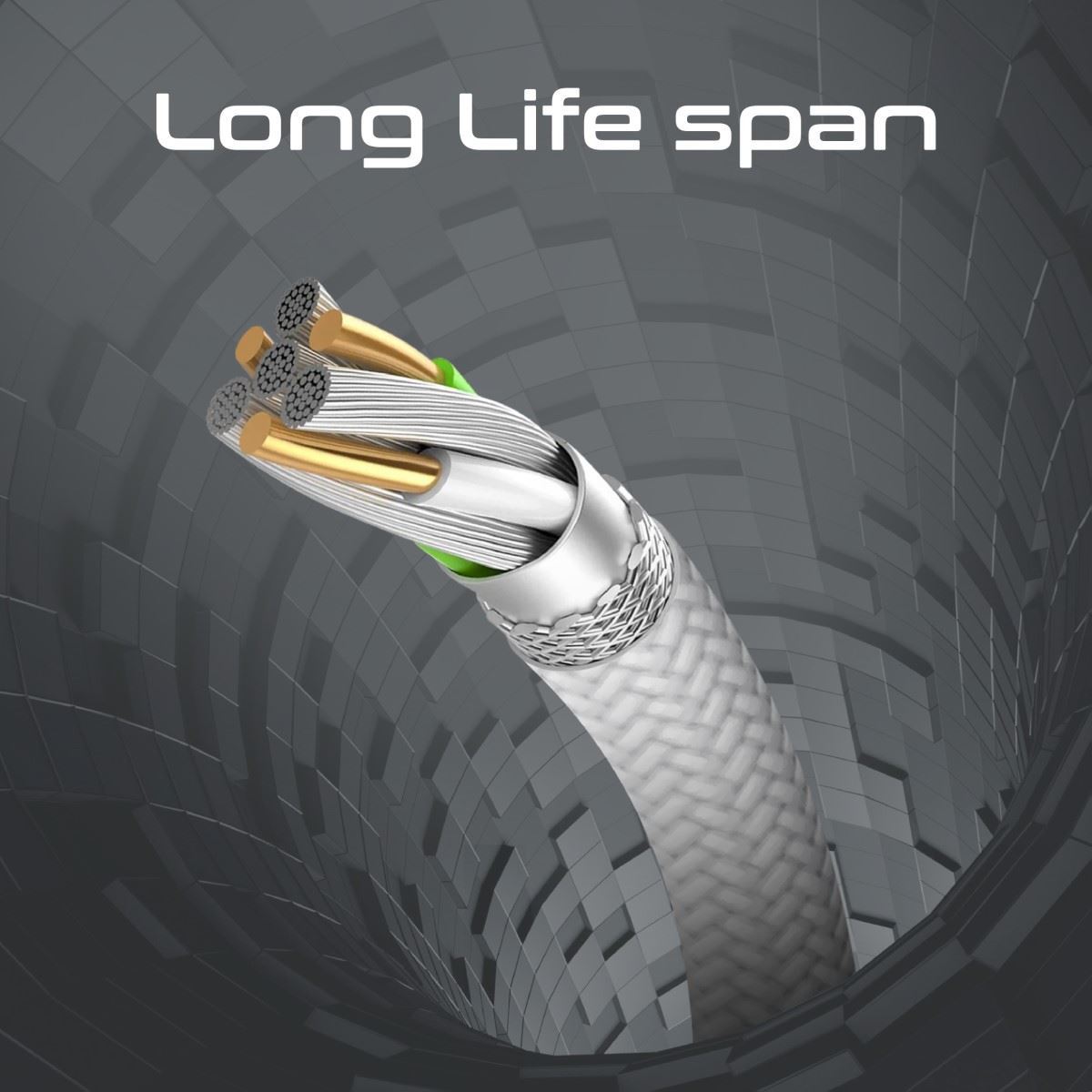 - Long Lifespan: Reinforced connector combined with high tensile strength nylon braided cable promotes durability