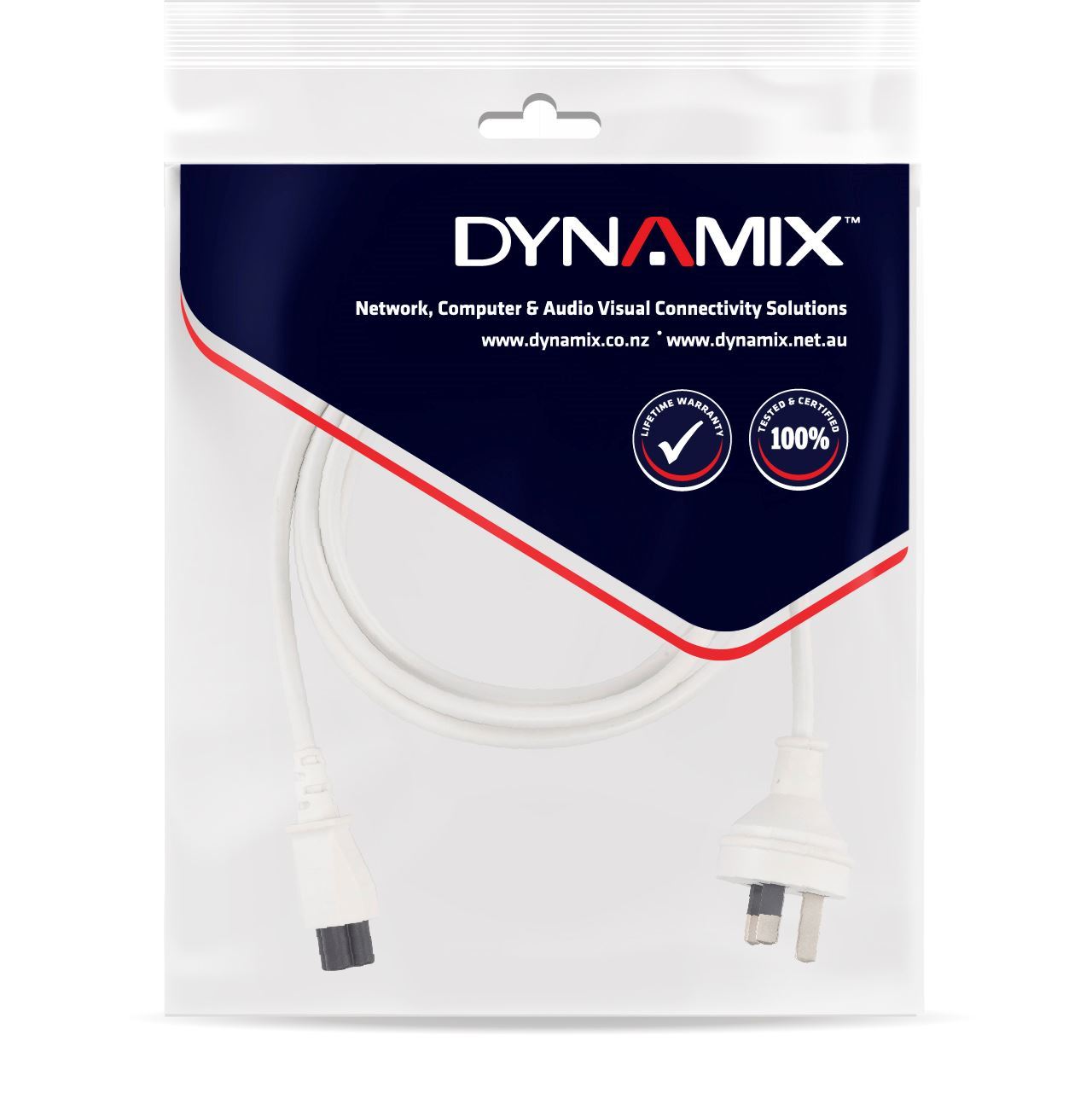 This DYNAMIX 3-Pin mains plug to IEC C5 - Male to Female clover leaf power cable is used on most compact power supplies found in laptops and other small appliances. The 3-pin mains wall plug (male) has insulated pins.