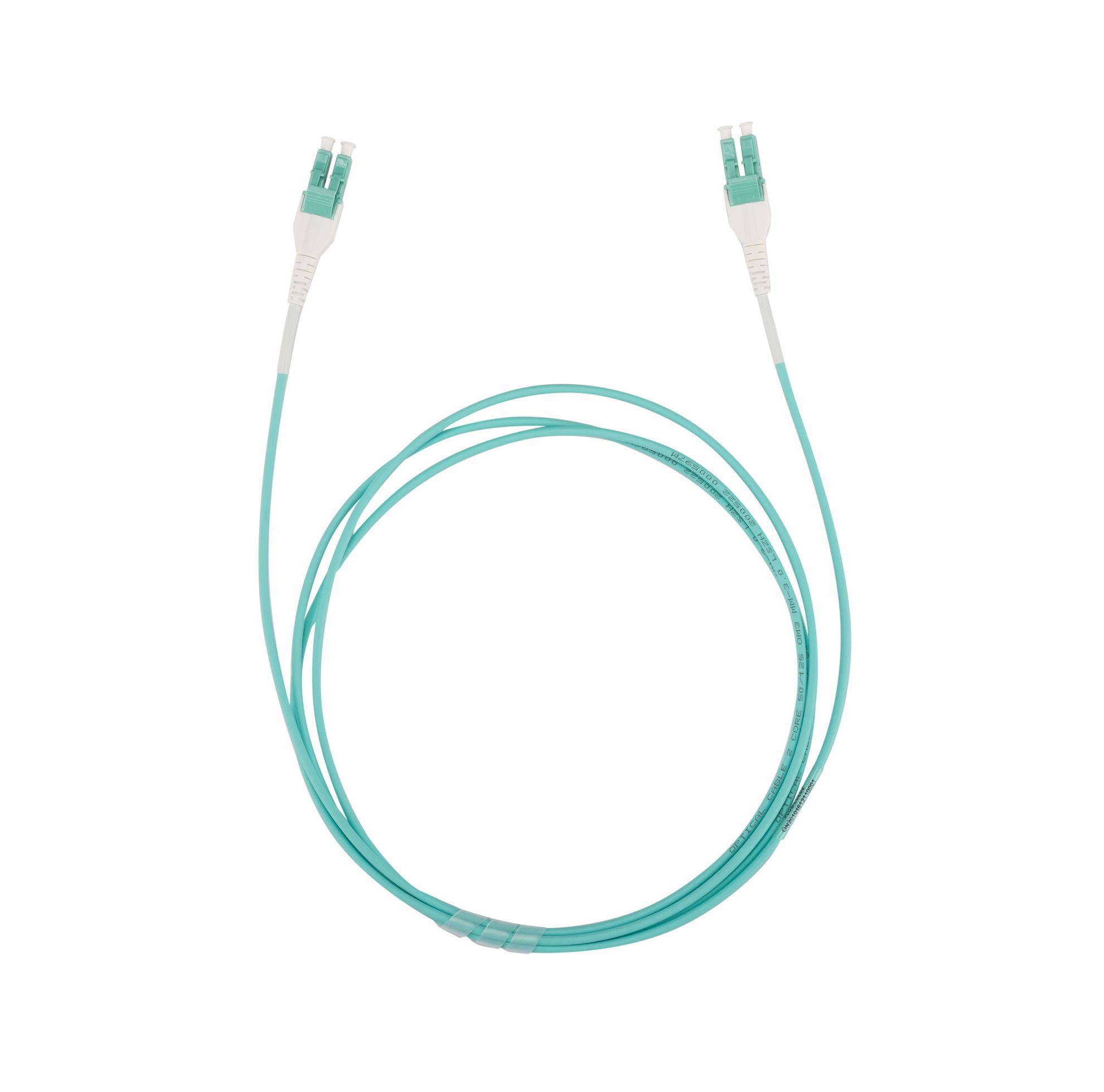 2M LC to LC OM3 Uniboot Elite Low-loss 50u 3mm MM Duplex Fibre Lead Aqua LSZH Jacket