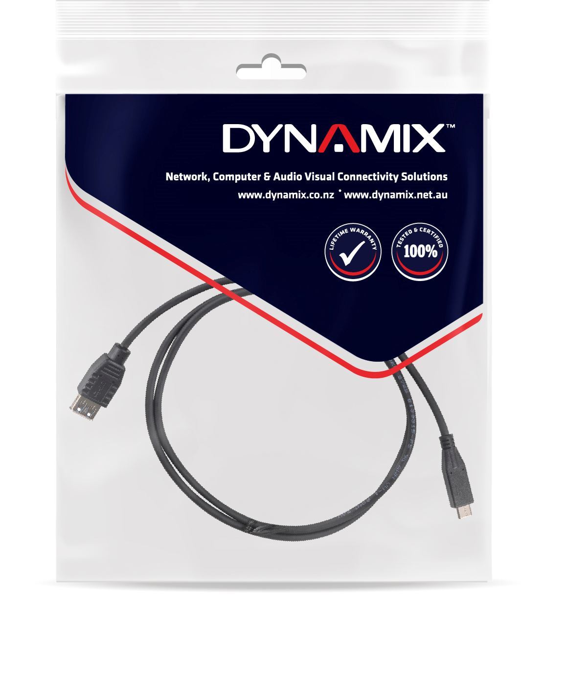 DYNAMIX 2M USB 3.1 USB-C Male to USB-A Female Cable Black Colour.