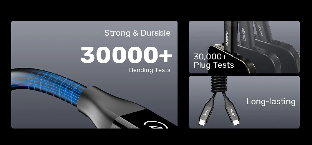 For durability, withstanding over 30,000 plug tests for long-lasting reliability. Designed with a strong, braided nylon exterior and reinforced connectors, it resists wear from frequent use. Supporting USB4 speeds up to 40Gbps, 8K video, and 100W charging, this cable ensures high performance for data transfer, video output, and fast charging across compatible devices like laptops, phones, and monitors. Perfect for professionals needing a robust, versatile cable.