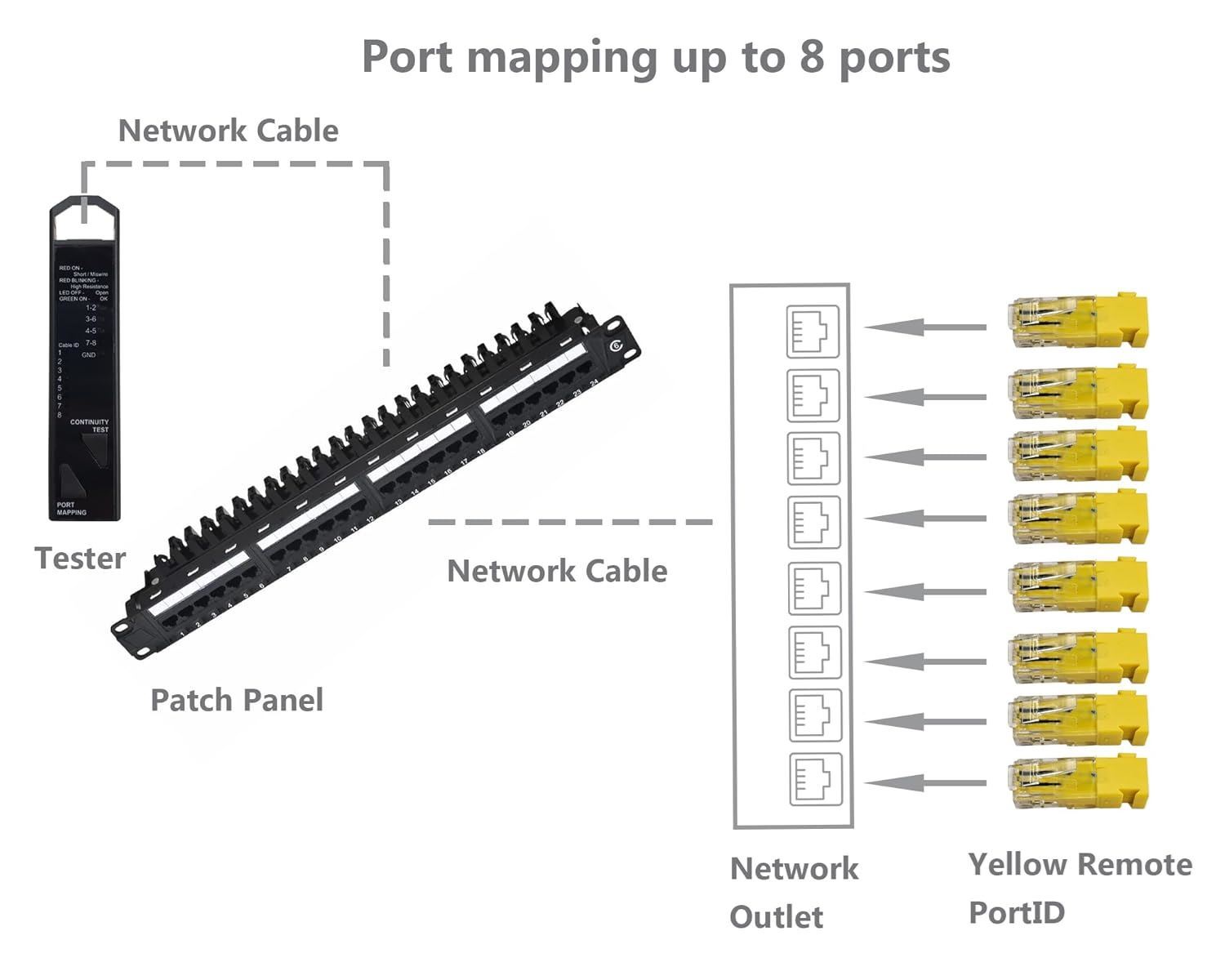 - 8x Yellow stackable cable identification plugs included