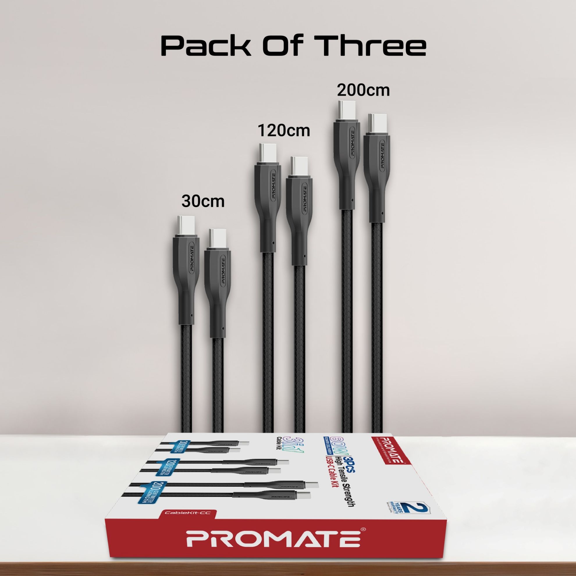 Introducing CableKit-CC, the ultimate solution for your charging and data transfer needs. Our cable kit offers three high-quality cables with varying lengths – 0.3 meters, 1.2 meters, and 2 meters – ensuring versatility and convenience for any situation. With 60W Power Delivery and 480Mbps data transfer capabilities, CableKit-CC delivers fast and reliable charging along with swift data syncing. Crafted from durable TPE material, these cables are built to withstand daily wear and tear while maintaining optimal performance. Whether you're charging your devices or transferring data, CableKit-CC guarantees seamless operation every time. Say goodbye to tangled cables and hello to efficiency with CableKit-CC – the perfect companion for your tech arsenal.
