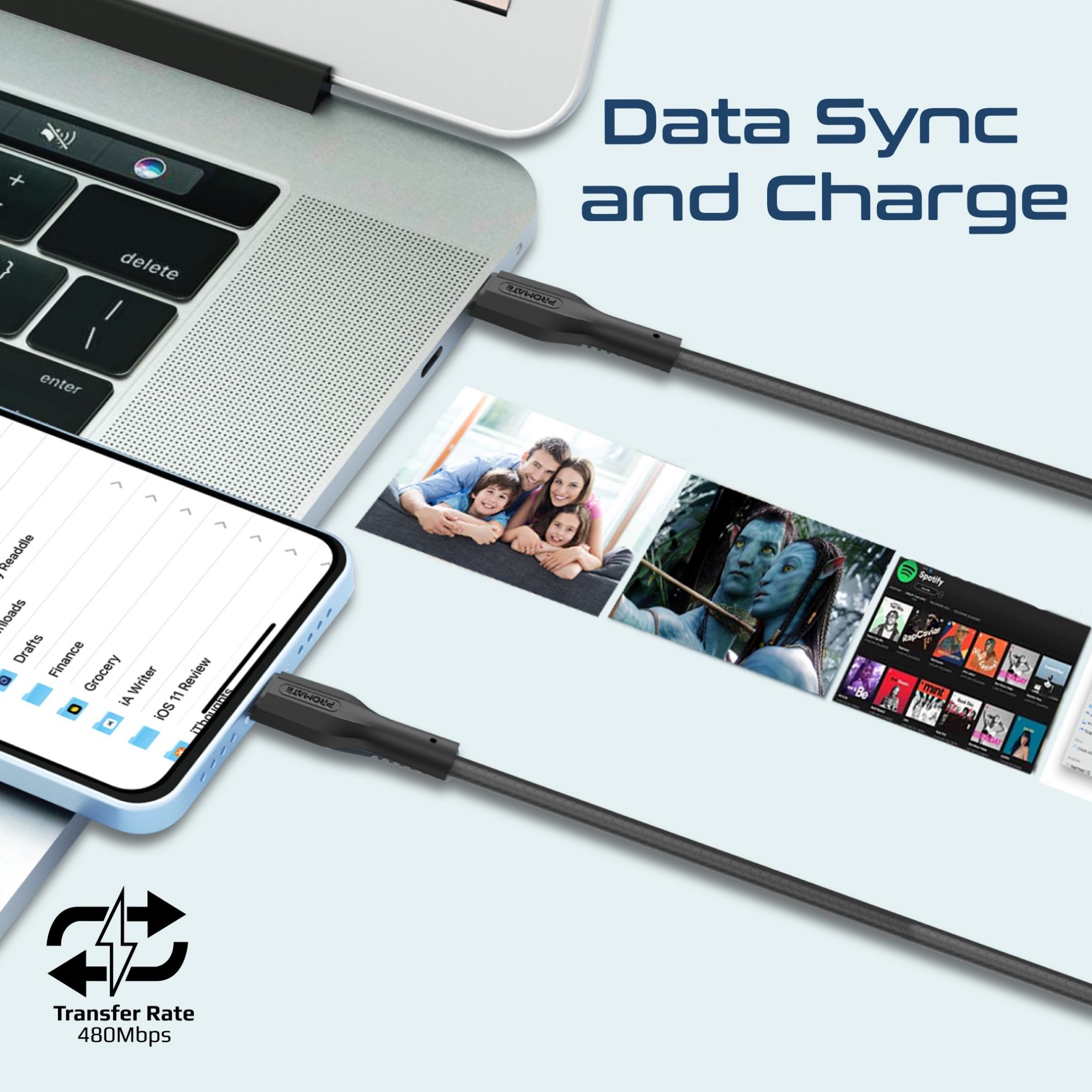 - Data Sync and Charge: Transfer photos, music, and movies between USB-C and Lightning devices at speeds of up to 480Mbps.