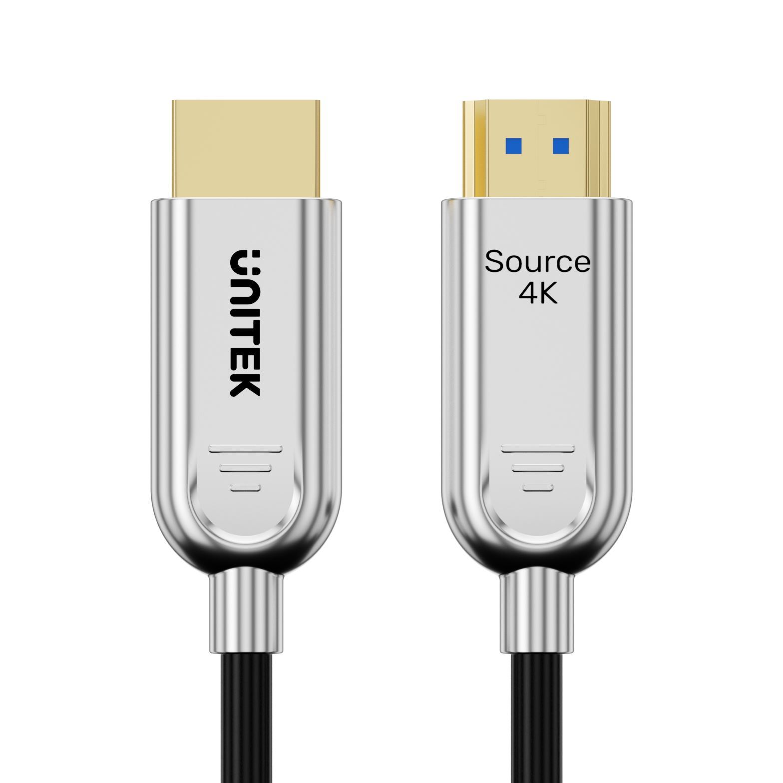 UNITEK Fibre Optic 4K HDMI cable supports HDMI 2.0 specifications with an impressive 18 Gbps high-speed bandwidth. Designed for lossless transmission of 4K@60Hz Ultra HD display signals, it ensures exceptional performance even over long distances.