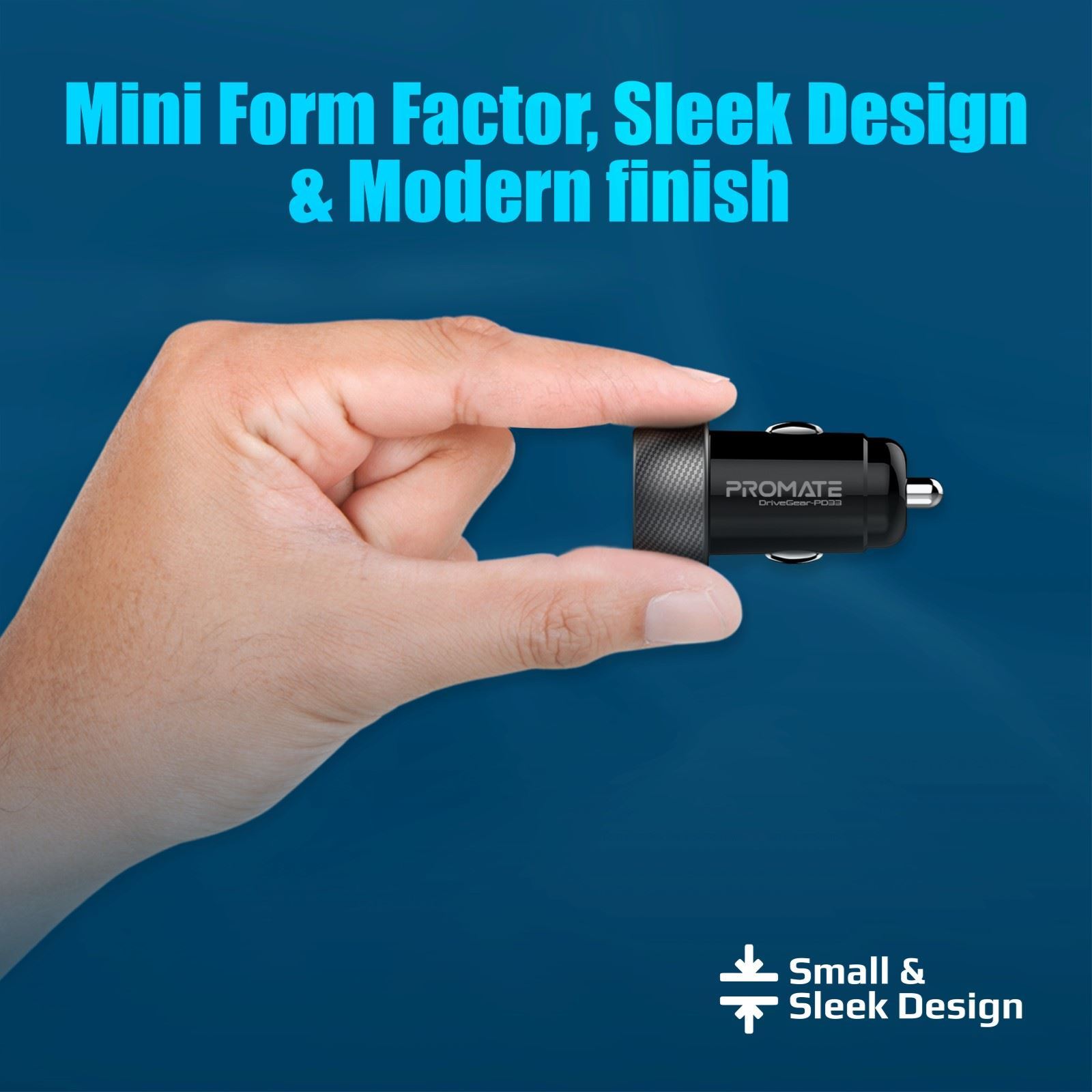 The DriveGear-PD33 car charger features an ultra-compact 50% smaller structure with dual ports to ensure maximum convenience and efficient power supply. This car charger occupies only minimal space in your car console. This sleek car charger perfectly blends with most car cigarette lighter and sits comfortably with the edge of the outlet.
