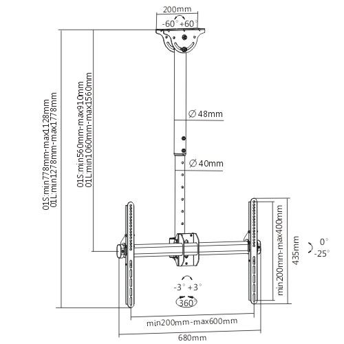 The PLB-CE946-01S is a full-motion ceiling mount designed to offer the ultimate in versatility and universal compatibility. Tilting ceiling plate for a flat and sloping ceiling application. It allows displays to tilt down and swivel around the pole without tools. Includes VESA plate to accommodate virtually any 37"~86" LCD TV or monitor up to 50kg/110lbs. Features adjustable height for perfect TV positioning and a wire management channel to keep cables concealed and organised.