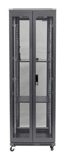 Our DYNAMIX SR series network server cabinets are an ideal solution to protect sensitive electronic networking equipment such as your server, network and telecommunications equipment in a sturdy, stable and mobile rack cabinet constructed from highly durable heavy-gauge steel. A tempered tinted glass front door ensures easy viewing and monitoring of equipment readouts while dual rear mesh doors provide additional air circulation and venting. Fully adjustable mounting rails and square mounting holes can accommodate various depth rack equipment. The DYNAMIX server cabinets are supplied standard with accessories including pre-installed fixed shelves, 2.5” heavy duty caster wheels & levelling feet, locking system, grounding pins, earthing wires, removable side panels, 4x cooling fans, and 6-way PDU (27RU and above). The cabinets are available in a wide variety of sizes from 12RU to 45RU.