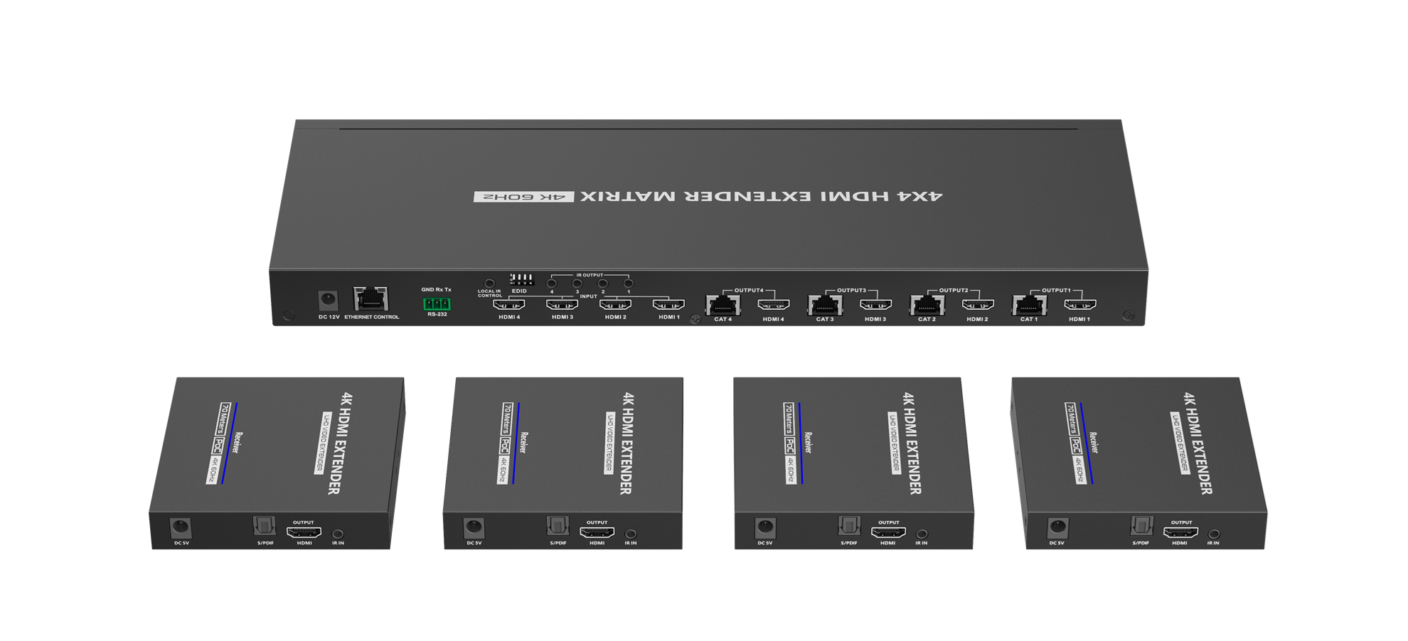 - Support 4x HDMI outputs via CAT6/6A/7 with transmission distance up to 70 meters