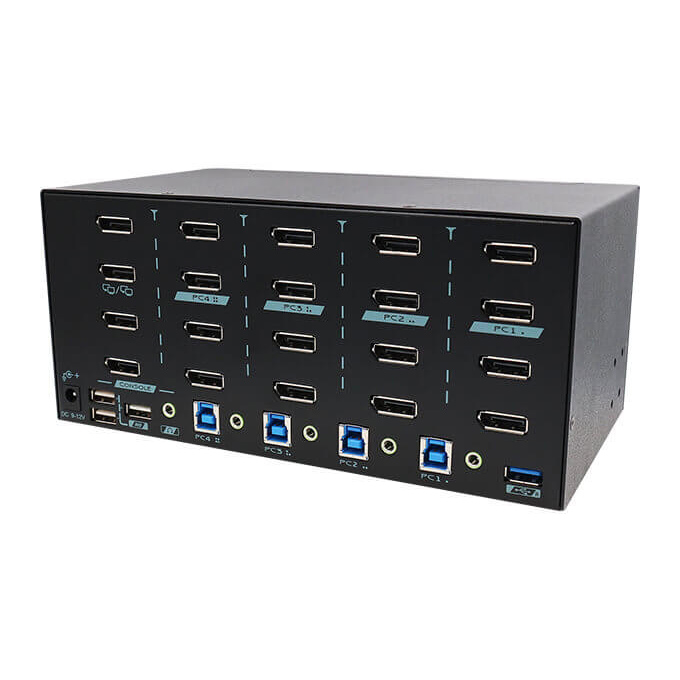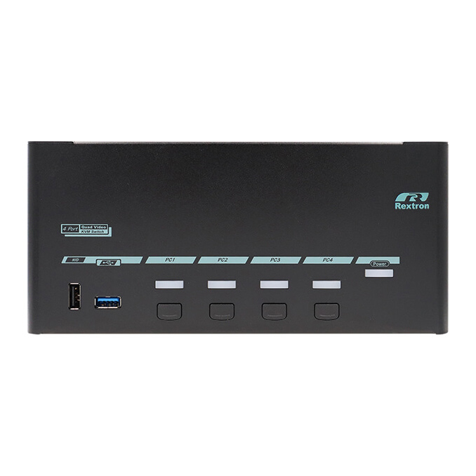 The Rextron PAAG-E3144B is the world’s first 4-Port Quad Monitor DisplayPort 1.4 KVM Switch with USB 3.2 Gen 1 support, designed for professionals who need to control four 8K DisplayPort computers using a single keyboard, mouse, and up to four monitors. Supporting resolutions up to 8K @ 60Hz (DSC), 5K @ 120Hz, and 4K @ 144Hz, this KVM switch delivers ultra-sharp visuals with 32.4 Gbps total bandwidth, EDID pass-through, and compliance with HDCP standards. It also includes an auxiliary 3.5mm audio port, a USB 3.2 Gen 1 hub for 5 Gbps data transfer, and real-time USB HID switching for seamless control across systems.