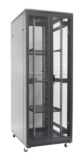 Our DYNAMIX SR series network server cabinets are an ideal solution to protect sensitive electronic networking equipment such as your server, network and telecommunications equipment in a sturdy, stable and mobile rack cabinet constructed from highly durable heavy-gauge steel. A tempered tinted glass front door ensures easy viewing and monitoring of equipment readouts while dual rear mesh doors provide additional air circulation and venting. Fully adjustable mounting rails and square mounting holes can accommodate various depth rack equipment. The DYNAMIX server cabinets are supplied standard with accessories including pre-installed fixed shelves, 2.5” heavy duty caster wheels & levelling feet, locking system, grounding pins, earthing wires, removable side panels, 4x cooling fans, and 6-way PDU (27RU and above). The cabinets are available in a wide variety of sizes from 12RU to 45RU