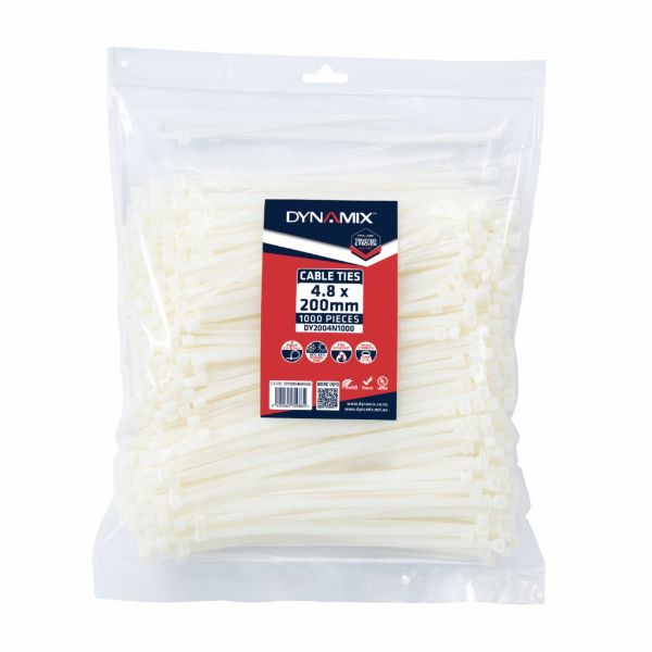 4.8 x 200mm Natural Cable Ties Pack of 1000 230N/23.4kgs Tensile Strength
