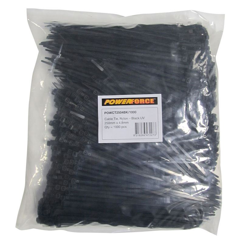4.8 x 250mm Black UV Cable Ties Pack of 1000 22kgs Tensile Strength