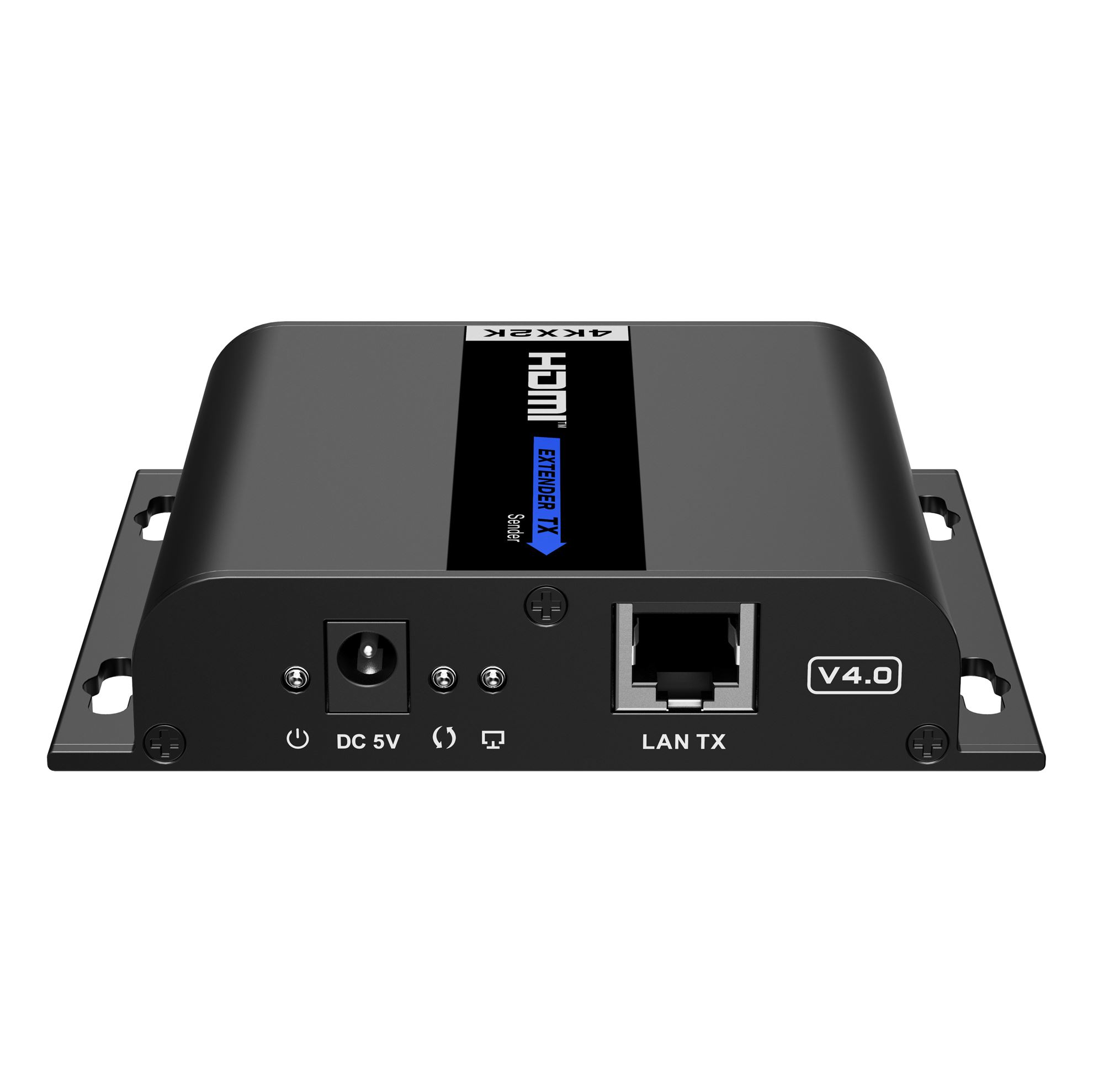 HDMI extender, extends HDMI video/audio resolution of 4K@30Hz for up to 120m via CAT6 network cable. Supports IR passback.