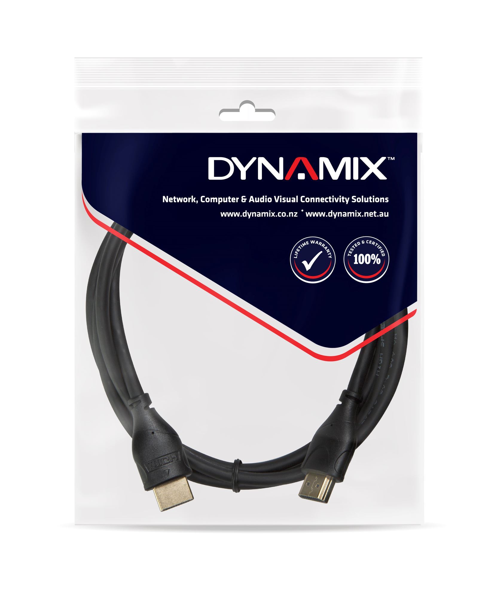 Enjoy high-quality picture and pure audio with the DYNAMIX HDMI Cable with Ethernet in your AV setup. It features HDMI Type A male connector on either end. It works with a variety of devices, including but not limited to UHD 4K TVs, A/V receivers, Blu-ray players, cable/ satellite boxes, gaming systems, Apple TV, Roku, computers and more. This cable meets HDMI 1.4 specification and is backwards compatible with all previous specifications.